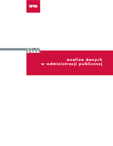 white PA P E R analiza dany ch w administracji publicznej white PA P E R Współcześnie, w stopniu większym niż kiedykolwiek przedtem, stajemy przed problemem rosnącej ilości danych. Sytuacja ta dotyczy nie tylko firm komercyjnych, czy agencji badawczych, ale także instytucji administracji publicznej. Jednostki administracyjne każdego szczebla muszą na co dzień podejmować trafne decyzje dotyczące przyszłości, w oparciu o rzetelne prognozy i stale monitorować skuteczność podejmowanych programów społecznych. Analizy umożliwiają pracownikom administracji publicznej zrozumienie, czy prowadzone działania zaspokajają potrzeby obywateli, czy są trafne, a także prognozowanie jakie będą ich długookresowe efekty. Jednostki administracji korzystające ze statystycznych metod analitycznych zyskują możliwość: efektywnego planowania programów i usług; określania skutków realizowanych programów; szacowania kosztów realizacji programów i spodziewanych korzyści; sprawdzenia, czy przedsięwzięcia są realizowane w sposób najbardziej efektywny; czytelnej prezentacji graficznej wyników analiz, która ułatwia komunikację zarówno z innymi instytucjami administracji, jak i z samymi mieszkańcami; zwiększania stopnia zadowolenia interesantów. Cz y jednostki administracji publicznej w ykorz ystują informacje zawarte w ich ogromnych zbiorach danych? Statystyczne narzędzia analityczne pomagają ich użytkownikom w uzyskaniu rzeczywistych korzyści z gromadzonych przez lata danych. W latach siedemdziesiątych rozpoczęła się era komercyjnych zastosowań komputerów do automatyzacji czynności wykonywanych uprzednio ręcznie. Komputery były używane do wykonywania wielu czynności biurowych, włączając w to księgowość, obsługę klientów oraz wystawianie rachunków. W latach osiemdziesiątych jednostki administracji publicznej zaczęły tworzenie baz danych zawierających różnego rodzaju informacje. Obecnie posiadają one ogromne ilości danych, często w formie hurtowni danych – niestety nie w pełni wykorzystywanych. Wiele jednostek do tej pory rozsyła obszerne raporty tabelaryczne, bazujące wyłącznie na wartościach średnich. Programy używane do tworzenia takich raportów ograniczają ilość przekazywanych informacji, zmniejszając tym samym możliwość zrozumienia istoty opisywanych zagadnień. Nowoczesne pakiety statystyczne i programy komputerowe używane do obsługi hurtowni danych oferują jednostkom administracji narzędzia umożliwiające pełne przetworzenie zarówno już zgromadzonych informacji jak i nowowprowadzanych danych. Statystyczne techniki analityczne dają użytkownikom możliwoś dogłębnego drążenia danych i wydobywania z nich informacji przydatnych do efektywnego realizowania zaplanowanych projektów. Na przykład, jeden z wydziałów ochrony zdrowia był w stanie precyzyjnie określić profile (charakterystyki)osób korzystających z jego usług i oszacować podatność na zachorowanie na niektóre choroby. Dzięki użyciu technik analitycznych pracownicy tego wydziału mogli określić charakterystyki demograficzne i behawioralne, które wykorzystano do zaklasyfikowania pewnych osób do grupy o podwyższonym ryzyku zachorowania na niektóre choroby. Wykorzystując w ten sposób zdobyte informacje, wydział ten mógł bardziej efektywnie prowadzi akcje profilaktyczne skierowane do wytypowanych grup ludności. Działania te miały na celu informowanie o niebezpieczeństwie zapadnięcia na chorobę i edukowanie o działaniach zapobiegawczych. Techniki statystyczne są niezwykle pomocne w trakcie realizacji programów poprawy obsługi interesantów, zwiększania zadowolenia własnych pracowników i programów mających na celu szeroko rozumianą poprawę jakości funkcjonowania instytucji. Aby takie działania mogły zosta skutecznie wdrożone, osoby 1 white paper SPSS analiza danych w administracji publicznej na kierowniczych stanowiskach powinny korzystać z technik analitycznych, dostarczających na bieżąco precyzyjnych informacji wspomagających trudny proces podejmowania trafnych decyzji. Na przykład, jedna z komend policji używa metod statystycznych do oceny społecznego odbioru działań policji i do kształtowania wizerunku realizowanych przez siebie przedsięwzięć. Informacje uzyskane dzięki użyciu technik analitycznych pozwalają na identyfikację obszarów działań, które nie spełniają oczekiwań z nimi związanych. Uzyskane informacje są następnie wykorzystywane do wprowadzania usprawnień w dziedzinach, w których naprawdę jest to niezbędne. Dzięki użyciu statystycznych metod analitycznych komenda policji była w stanie uzyska rzeczywistą ocenę, w jaki sposób społeczeństwo postrzega prowadzone przez tę komendę działania oraz określić obszary, w których niezbędne jest dokonanie zmian. Rysunek 1. Przyczyny niezadowolenia z usług policji. Wykres wykazuje, że najważniejsze przyczyny niezadowolenia to wbrew pozorom nie „zbędne procedury formalne”, ale nieuprzejme odnoszenie się do klienta, a także mała liczba patroli. Analiza przy pomocy arkuszy kalkulacyjnych najczęściej kończy się na takich wykresach dostarczając tylko ogólnej wiedzy, która nie pozwala zbudować efektywnego programu naprawczego. Dzięki odpowiednim narzędziom można jednak bardzo szybko analizę pogłębić. Na przykład sprawdzić, czy we wszystkich badanych rejonach rozkład odpowiedzi były podobny, czy być może, to wiek respondentów był zmienną, która najbardziej różnicowała odpowiedzi. Odpowiedzi na tego typu pytania pozwala uzyskać jeden z unikalnych modułów prezentacji wyników na wykresach SPSS Maps. Dzięki nim można szybko i w prosty sposób kontrolować rozkład poszczególnych zmiennych, jak na przykład „rodzaje przestępstw” (kryminalne, gospodarcze, rozboje, kradzieże itp.) nie tylko w jednym mieście, ale także porównawczo w innych województwach, czy całej Pol