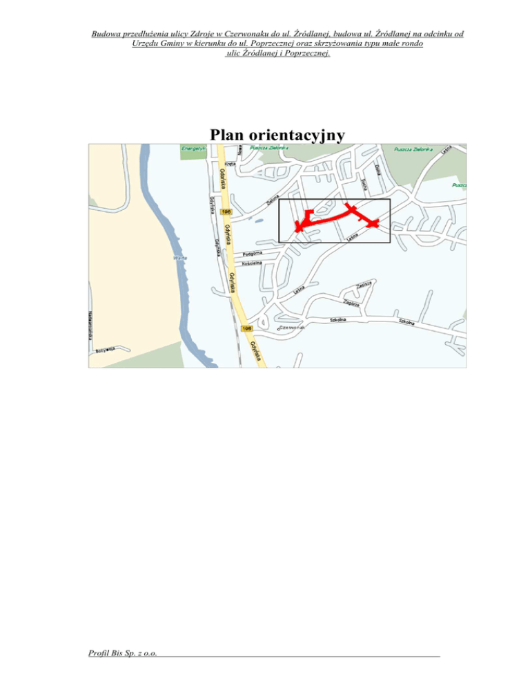 Budowa przedłuŜenia ulicy Zdroje w Czerwonaku do ul. Źródlanej, budowa ul. Źródlanej na odcinku od Urzędu Gminy w kierunku do ul. Poprzecznej oraz skrzyŜowania typu małe rondo ulic Źródlanej i Poprzecznej. Plan orientacyjny Profil Bis Sp. z o.o. Budowa przedłuŜenia ulicy Zdroje w Czerwonaku do ul. Źródlanej, budowa ul. Źródlanej na odcinku od Urzędu Gminy w kierunku do ul. Poprzecznej oraz skrzyŜowania typu małe rondo ulic Źródlanej i Poprzecznej. Opis techniczny do projektu wykonawczego 1. Lokalizacja obiektu (zadania) objętego projektem • • • • • Obiekt – Budowa przedłuŜenia ulicy Zdroje w Czerwonaku do ul. Źródlanej, budowa ul. Źródlanej na odcinku od Urzędu Gminy w kierunku do ul. Poprzecznej oraz skrzyŜowania typu małe rondo ulic Źródlanej i Poprzecznej, Miejscowość – Czerwonak, Gmina Czerwonak, Powiat poznański, Województwo – Wielkopolskie. 2. Podstawa opracowania • • • • • • • • • • • • • Umowa zawarta z Zamawiającym, Mapa do celów projektowych w skali 1:500, Mapa ewidencyjna, Dokumentacja geotechniczna, Wytyczne projektowania dróg, Wytyczne projektowania ulic, Wytyczne projektowania skrzyŜowań drogowych, Instrukcja projektowania małych rond, Katalog typowych konstrukcji nawierzchni podatnych i półsztywnych, Rozporządzenie ministra transportu i gospodarki morskiej w sprawie warunków technicznych, jakim powinny odpowiadać drogi publiczne i ich usytuowanie, Ustawa o drogach publicznych, Ustalenia z Inwestorem, Wizja w terenie. 3. Cel i zakres opracowania Projektowane drogi mają na celu usprawnienie i uporządkowanie ruchu lokalnego w centralnej części miasta Czerwonak, związanego między innymi z dojazdem do Urzędu Gminy Czerwonak oraz dojazdem do pobliskich posesji. Nowe i odpowiednio dobrane konstrukcje nawierzchni jezdni mają za zadanie przenieść przewidywane natęŜenie ruchu. Projektowane przedsięwzięcie nie powoduje specjalnych zagroŜeń dla otoczenia. Istniejące oraz przewidywane zagroŜenia wynikają z funkcji drogi – prowadzenie ruchu drogowego. Projekt ma na celu zmniejszenie tych zagroŜeń. Zaprojektowane rozwiązania, rondo na głównym skrzyŜowaniu, azyle dla pieszych na przejściach, wydzielenie chodnika mają pozytywny wpływ na bezpieczeństwo ruchu drogowego i zmniejszają negatywne oddziaływanie drogi, poniewaŜ poprawiają płynność ruchu, powodują zmniejszenie prędkości, ułatwiają przejście przez jezdnie. Odprowadzenie wód deszczowych z jezdni Profil Bis Sp. z o.o. Budowa przedłuŜenia ulicy Zdroje w Czerwonaku do ul. Źródlanej, budowa ul. Źródlanej na odcinku od Urzędu Gminy w kierunku do ul. Poprzecznej oraz skrzyŜowania typu małe rondo ulic Źródlanej i Poprzecznej. oraz oświetlenie ulic zapewni swobodne i bezpieczne poruszanie się pieszych a przede wszystkim pojazdów silnikowych. Projektowane rozwiązanie nie mieści się w granicach istniejących pasów drogowych, dlatego przewiduje się zmianę granic pasa drogowego. 4. Przedmiot inwestycji Przedmiotem niniejszego opracowania jest: • budowa ronda, • budowa nawierzchni jezdni ulic oraz jej odwodnienie, • budowa zjazdu do separatora, • budowa zatok autobusowych, • budowa zatoki postojowej, • budowa zjazdów publicznych i indywidualnych, • budowa chodników, • budowa murków oporowych, • rozbudowa istniejącego przepustu, • zagospodarowanie pasa drogowego zielenią. 5. Dane ogólne o terenie Teren inwestycji połoŜony jest w centralnej części miejscowości Czerwonak. Rozpatrywane ulice stanowią sieć układu komunikacyjnego tej części miasta, zapewniając dojazd do pobliskich posesji oraz Urzędu Gminy Czerwonak. Istniejące ulice posiadają zróŜnicowaną nawierzchnię: • ul. Źródlana – częściowo asfaltowa o szerokości około 6,0m, częściowo z bruku betonowego o szerokości równieŜ około 6,0m, a w większej części gruntowa o szerokości około 5,0m, • ulice: Poprzeczna, Zdroje – asfaltowa o szerokości około 6,0m, • ul. Działkowa - asfaltowa o szerokości około 5,0m, • ulice: Piaskowa, Południowa, Działkowa przy Źródlanej – gruntowa o szerokości około 4,0m. Odcinki ulic o nawierzchni utwardzonej (asfalt, bruk betonowy) ograniczone są krawęŜnikiem betonowym, natomiast o nawierzchni gruntowej okrawęŜnikowanie brak. Przy skrzyŜowaniu ulic Poprzecznej oraz Działkowej znajduje się parking o nawierzchni z kostki betonowej. Przy UG znajduje się zatoka postojowa o nawierzchni z kostki betonowej. Przy głównych ulicach (Źródlana, Poprzeczna, Zdroje) wykonane są chodniki jednostronne o szerokości około 1,5m i o nawierzchni głównie z płyt chodnikowych, a miejscami z kostki betonowej. Chodniki ograniczone obrzeŜem betonowym. SkrzyŜowania ulic wykonane są jako zwykłe. Plac przy skrzyŜowaniu ul. Poprzecznej i Źródlanej jest pokryty szatą roślinną – trawa, krzewy i drzewa. Między skrzyŜowaniami ulic Źródlana i Działkowa oraz Leśna i Zdrojowa znajduje się teren zielony – łąki oraz biegnie rów odwadniający łąki i dzielący je na dwie części. W celu polaczenia ich, wykonany jest przepust w postaci rury kamionkowej przykrytej gruntem. Profil Bis Sp. z o.o. Budowa przedłuŜenia ulicy Zdroje w Czerwonaku do ul. Źródlanej, budowa ul. Źródlanej na odcinku od Urzędu Gminy w kierunku do ul. Poprzecznej oraz skrzyŜowania typu małe rondo ulic Źródlanej i Poprzecznej. Większość działek sąsiadujących z pasem drogowym jest ogrodzona płotami o konstrukcji z płyt prefabrykowanych bądź z siatki metalowej lub desek na słupkach stalowych na podmurówce. Teren pod drogi, w zaleŜności od miejsca, jest zróŜnicowany wysokościowo – miejscami stosunkowo płaski a miejscami występują znaczne róŜnice poziomów sięgające nawet 12,5m, ale róŜnice te występują przy znacznych odległościach. Na terenie objętym opracowaniem znajdują się niŜej wymienione sieci: • wodociągowa, 
