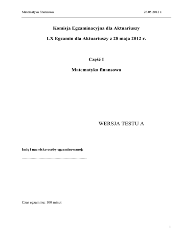 LX Egzamin dla Aktuariuszy z 28 maja 2012 r.