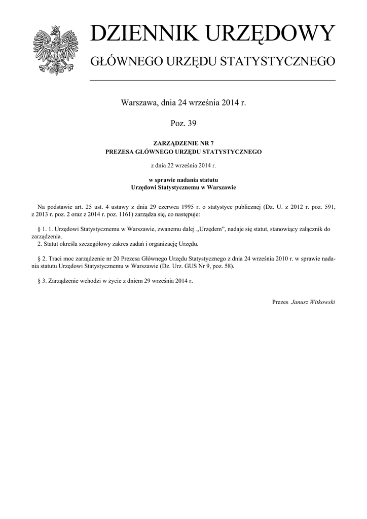 Zarządzenie nr 7 Prezesa Głównego Urzędu Statystycznego z dnia