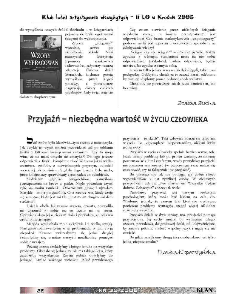 .OXEOXG]LDUW\VW\F]QLHQLHZ\u\W\FK,,/2Z.URqQLH GRZ\P\SODQLD QRZ\FK mUyGHâ GRFKRGX ² Z NVLJDUQLDFK SRMDZLâ\ VL EU\NL ]JRWRZ\PL SFL JDPLGRZ\NRU]\VWDQLD =UHV]W ÅSFL JDP\µ ZV]G]LH QDZHW SR VNR>F]HQLX V]NRâ\ 1DVL QDXF]\FLHOH NRU]\VWDM ]SRPRF\ &]\ ]DWHP ZMHGQ\P VWDZLDQLH V]HUHJX ] SU]H] QLHNWyU\FK SFL JDQLD SU]HVWSVWZDPL LQQ\PL MHVW RGSRZLHGQLH" &]\ EUDQLH QDUNRW\NRZ\FK ÅZVSRPDJDF]\µ SRGF]DV QDXNL MHVW OHSV]\P L XF]FLZV]\P VSRVREHP QD ]GRE\ZDQLHZLHG]\" ÅRFL JDý F]\ QLH ]JRGQLH ] RGSRZLHG]LHý QDXNRZ\FK SFL JDý"µ ² RWR MHVW S\WDQLH .DoG\ ZâDVQ\P VXPLHQLHP -DNDNROZLHN PXVL QD QLH RGSRZLHGm SDGQLH VRELH EG]LH XF]FLZDER]JRGQD]VDP\PVRE LVâRZQLNyZ UHo\VHU]\ WZRU] G]LHâ -D ZLHP W\ONR MHGQR ZV]\VF\ NLHG\S SFL JDOL WDNoH QDVL NXFKDU]H JRWXM SHGDJRG]\*G\E\SP\FKFLHOL ]DWR]DF] ýNDUDý RGHEUDQR SU]H] NRJRS E\PDWXU\LG\SORP\SRQDGSRâRZLHVSRâHF]H>VWZD DGDSWDFMH ILOPRZH OLWHUDFNLFK Z\P\SORQH SRWUDZ\ D QDJU\ZDM FRYHU\ &KFLDâRE\ VL SRZLHG]LHý QLHFK U]XFL NDPLH> WHQ NWR SLRVHQNDU]H EH]ZLQ\ FXG]\FK SU]HERMyZ&Dâ\SZLDWVWDMHVL SZLDWHPVNRSLRZDQ\P (L>KK>(R@E> 3U]\MD.tQLH]EGQDZDUWR$:/<&,8&=ü2:,(.$ 'S ]L ]QyZ E\âD NODVyZNDW\P UD]HP ] PDWHPDW\NL -DN ]Z\NOH MHM Z\QLN PRoQD SU]HZLG]LHý WXo SR RGGDQLX SU]\MDFLHOD ² WR VNDUEµ 7DNL F]âRZLHN ]GDU]D VL W\ONR UD] Zo\FLX 7R ÅHJ]HPSODU]µ QLHSRZWDU]DOQ\ QLF]\P NZLDW MHGQHMQRF\ NDUWNL ] NLONRPD UR]ZL ]DQ\PL ]DGDQLDPL &]\ WR PRMD 3U]\MDm> Z o\FLX F]âRZLHNDVSHâQLD EDUG]R ZDoQ URO oHQLH PDP XP\VâX PDWHPDW\ND" 'R WHJR MHV]F]H RGSRZLHGm ] IL]\NLNRPSOHWQH GQR :GRPX MDNDS ZLHOND -HoHOL PDP\ SUREOHP\ OXE SR SURVWX F]XMHP\ oH PXVLP\ ZLQD SRUR]PDZLDý]NLPS]DXIDQ\PZWHG\SUDZG]LZ\SU]\MDFLHO DZDQWXUD DXWREXV ] QLHZLDGRP\FK SU]\F]\Q RGMHFKDâ QLHSRZLQLHQ QDV ]DZLHSý Z SU]HFLZQ\P UD]LH QDOHo\ VL ZF]HSQLHM QLoSRZLQLHQ$ JG\E\ WHJR MHV]F]H E\âR PDâR ]DVWDQRZLýF]\WRIDNW\F]QLHMHVWSU]\MDm>" MXWURNROHMQHWU]\VSUDZG]LDQ\LVWRV]DGD>GRRGURELHQLD JâERNR 6LHG]LDâDP SU]\JQELRQD ]DP\SORQD %R SU]HFLHo QLF WDN QLH SRPDJD MDN GREUH VâRZR Z\SRZLHG]LDQH ] XVW o\F]OLZHM RVRE\ : QLHNWyU\FK L]UR]SDF]RQD QD âDZFH Z SDUNX 1DJOH SRF]XâDP F]\M S SU]\SDGNDFK ]GDQLH Å1LH PDUWZ VL :V]\VWNR EG]LH UN QD PRLP UDPLHQLX 2GZUyFLâDP JâRZ L XMU]DâDP GREU]H=REDF]\V]µ]QDF]\WDNZLHOH 0DW\OG ² PRM SU]\MDFLyâN 2QD ]DZV]H ZLH NLHG\ F]XM 3UDZG]LZ\ SU]\MDFLHO VL VDPRWQD NLHG\ MHVW PL mOH Å-HVW PRLP GUXJLP DQLRâHP SV\FKRORJLHP VWUyoHPµ :LDGRPR MHGQDN 8VLDGâD RERN -DN ]DZV]H V]F]HUD RWZDUWD SR]ZROLâD PL Z\U]XFLý ] VLHELH WR FR OHoDâR PL QD VHUFX 2SRZLHG]LDâDP MHM R FLoNLP GQLX L SRF]XâDP oH RG UD]X ]URELâRPLVLOHSLHM 1DVWSQLH UR]PDZLDâ\SP\ R MHM SUREOHPDFK R W\P FR M QLHSRNRL =DZV]H ]ZLHU]Dâ\SP\ VL MHGQD GUXJLHM LVWDUDâ\SP\ VL ZPLDU QDV]\FK PRoOLZRSFL SRPDJDý 3ymQLHMUD]HPV]XNDâ\SP\]âRWHJR SURGND QDZV]\VWNLH SUREOHP\2ND]DâRVLMHGQDN oHQLHPDWDNLHJROHNXNWyU\ 5D]HP MHGQDN GRV]â\SP\ GR MHGQHJR EDUG]R ZDoQHJR ZQLRVNX Å0LHý SUDZG]LZHJR QDV]\P OHNLHP QD RVRELVW\P FDâH ]âR F]DVHP WDNL NWRS QLH Z\VWDUF]D SRQLHZDo SUREOHP\ Z\PDJDM F]HJRS ZLFHM QLoGREUH 3U]\MDm> G]LDâD Z GZLH VWURQ\ W]Q SU]\MDFLHO SRPDJD -HM FHFK\ PRoQD E\ Z\PLHQLDý GâXJR V]F]HUD SUDZG]LZD GR JURERZHM GHVNL LWG 1DMZDoQLHMV]H E\ ]DZV]H SRWUDILý ]QDOHmý ZVSyOQ\ M]\N L QLJG\ VL QLH ]DZLHSý %RJG]LH]QDMG]LHP\GUXJ WDN RVREVNRUR MHVWW\ONR MHGQDQLHSRZWDU]DOQD" VRELHQDZ]DMHP ]DUDG]LâE\ ZV]\VWNLHPX oH MHVW E\ý VâRZRF]\ZVSDUFLH SU]\MDFLHORZL 0DW\OGD Z\VâXFKDâD PQLH FLHUSOLZLH L ] ZLHON XZDJ PRoH NWyU\ #TBIFK>)LMBOPQVPH>