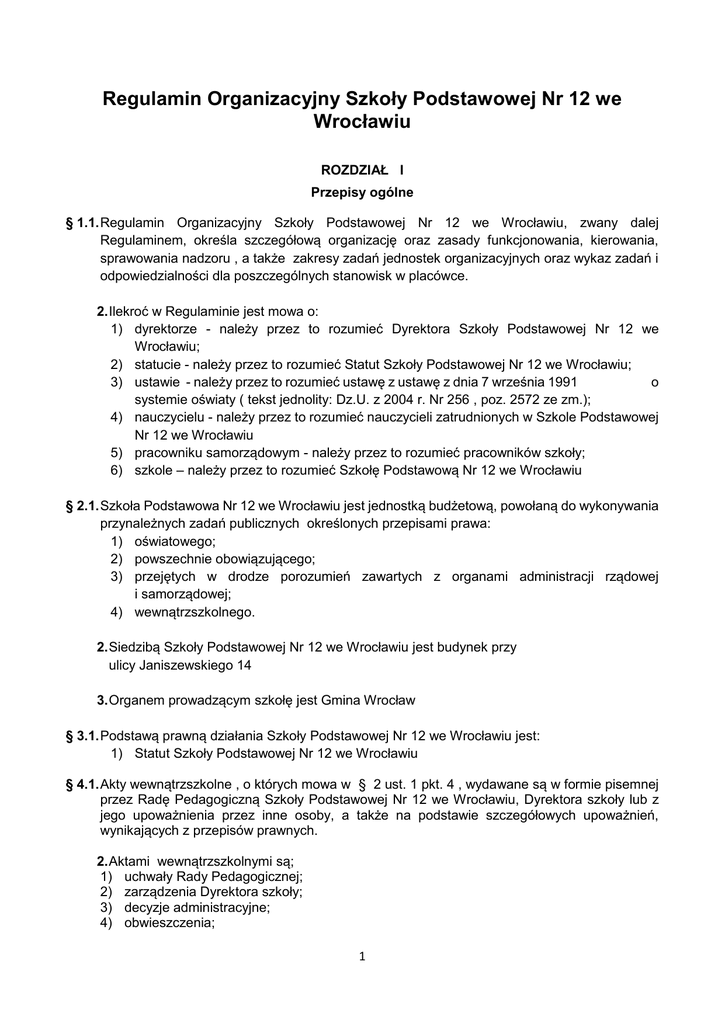 Regulamin Organizacyjny Szkoły Podstawowej Nr 12 we Wrocławiu