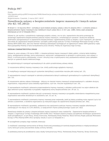Policja 997 Nowelizacja ustawy o bezpieczeństwie imprez
