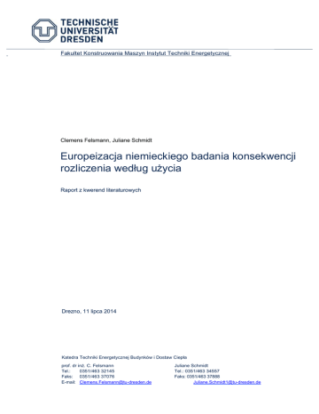 Fakultet Konstruowania Maszyn Instytut Techniki Energetycznej Clemens Felsmann, Juliane Schmidt Europeizacja niemieckiego badania konsekwencji rozliczenia według użycia Raport z kwerend literaturowych Drezno, 11 lipca 2014 Katedra Techniki Energetycznej Budynków i Dostaw Ciepła prof. dr Tel.: Faks: E-mail: inż. C. Felsmann 0351/463 32145 0351/463 37076 [email protected] Juliane Schmidt Tel.: 0351/463 34557 Faks: 0351/463 37888 [email protected] TU Drezno • Instytut Techniki Energetycznej • Katedra Techniki Energetycznej Budynków i Dostaw Ciepła Konsekwencje rozliczenia według użycia w Europie - kwerendy literaturowe 11 lipca 2014 Strona 2 z 44 TU Drezno • Instytut Techniki Energetycznej • Katedra Techniki Energetycznej Budynków i Dostaw Ciepła 11 lipca 2014 Podsumowanie Dostępne od stycznia 2013 roku niemieckie badania dotyczące „Konsekwencji rozliczenia według zużycia w zależności od energetycznej jakości budynków" opiera się na wnioskach z licznych badań poświęconych oszczędnościom energetycznym, które wynikają z rozliczenia kosztów ogrzewania według zużycia. Europejska dyrektywa w sprawie efektywności energii 2012/27/WE z dnia 25.10.2012 nakłada na wszystkich klientów końcowych obowiązek wyposażenia w liczniki, co umożliwia skuteczniejsze rejestrowanie zużycia (§9). Niemieckie doświadczenia pokazują, że wprowadzenie rozliczenia według zużycia skutkuje zmianami zachowań użytkowych najemców w kierunku bardziej oszczędnego gospodarowania energią. Ponieważ użytkownicy budynków ponoszą opłaty w zależności od indywidualnego zużycia, średnio obserwuje się zmniejszenie zużycia ciepła grzewczego o 20% w porównaniu do stosowanego dotąd rozliczenia ryczałtowego. Przy pomocy kompleksowych kwerend literaturowych badań międzynarodowych zweryfikowano możliwość przeniesienia tego potencjału oszczędności na inne kraje europejskie. Poszczególne doświadczenia związane z rozliczeniem według zużycia w innych krajach pokazują, że możliwe do osiągnięcia oszczędności w Europie pozostają w zakresie typowej dla Niemiec wartości 20%. Przykładowo dla Francji, Szwecji, Polski i Włoch wynika na tej podstawie całkowity potencjał oszczędności to 21.517 KWh rocznie, co pozwoliłoby uniknąć rocznej emisji 5,9 miliona t CO2. Przy użyciu przybliżonego porównania typowych kosztów wprowadzenia rozliczenia według zużycia z oczekiwanymi oszczędnościami finansowymi wskutek zmniejszonego zużycia potwierdza ekonomiczność europejskiego rozliczenia kosztów ogrzewania według zużycia. Abstract Since January 2013 there is a German study on the "Effects of consumption-based billing, depending on the energy quality of buildings" based on the findings of numerous studies on energy savings resulting from the consumption-dependent billing of heating costs. The European Energy Efficiency Directive 2012/27/EU from October 25, 2012 calls now for equip- ping all end customers with meters to allow for individual metering (§ 9). The German expe- rience shows that the introduction of usage-based billing leads to permanent changes in consumer behavior. Since the tenants of the building have now been asked to pay for their individual consumption, the overall consumption of heating energy in residential buildings could be reduced by 20 % compared to the previously prevailing flat rate basis. By means of an extensive literature review of additional international studies, the transferability of this savings potential has been tested for other European countries. The individualized experiences with the usage-based billing in other countries show that the achievable savings in consumption in Europe are comparable to the 20 % that are typical for Germany. By the example of France, Sweden, Poland and Italy this results in a total saving of 21 517 GWh per year, which would lead to an annual avoidance of 5.9 million tons of CO2 emissions. Using a rough comparison of typical costs for the implementation of usage-based billing with the expected financial savings from reduced consumption, the efficiency of a Europe-wide consumption-based billing of heating costs is confirmed. Konsekwencje rozliczenia według użycia w Europie - kwerendy literaturowe Strona 3 z 44 TU Drezno • Instytut Techniki Energetycznej • Katedra Techniki Energetycznej Budynków i Dostaw Ciepła Konsekwencje rozliczenia według użycia w Europie - kwerendy literaturowe 11 lipca 2014 Strona 4 z 44 TU Drezno • Instytut Techniki Energetycznej • Katedra Techniki Energetycznej Budynków i Dostaw Ciepła 11 lipca 2014 1. Wprowadzenie Od stycznia 2013 dostępne są wyniki badania „Konsekwencje rozliczenia według zużycia w zależności od jakości energetycznej budynku". Podstawę badań stanowiły liczne projekty i doświadczenia związane ze znanymi efektami oszczędności wskutek wprowadzenia rozliczenia kosztów ogrzewania w Niemczech według zużycia. Europejska dyrektywa w sprawie efektywności energii 2012/27/WE z dnia 25.10.2012 nakłada na wszystkich klientów końcowych obowiązek wyposażenia w liczniki, co umożliwia skuteczniejsze rejestrowanie zużycia (§9). Jest to pomocne dla dalszej argumentacji, w jakim stopniu stwierdzenia dotyczące potencjału oszczędności i konsekwencji rozliczenia według zużycia mogą zostać przeniesione na inne kraje europejskie lub czy w innych krajach występują już w tym zakresie odnośne wartości empiryczne. Przy zastosowaniu kompleksowych kwerend literaturowych dostępnych badań, przede wszystkim z krajów europejskich, poświęconych kwestiom rozliczenia według zużycia i oszczędnościom zużycia w wyniku zmienionych zachowań użytkowników w zakresie budynków, należy zweryfikować możliwość przeniesienia dotychczasowych stwierdzeń na inne kraje europejskie. Zebrane badania oraz wynikające z nich istotne stwierdzenia są poniżej udokumentowane i systematycznie opracowane. Ewentualne, specyficzne dla 