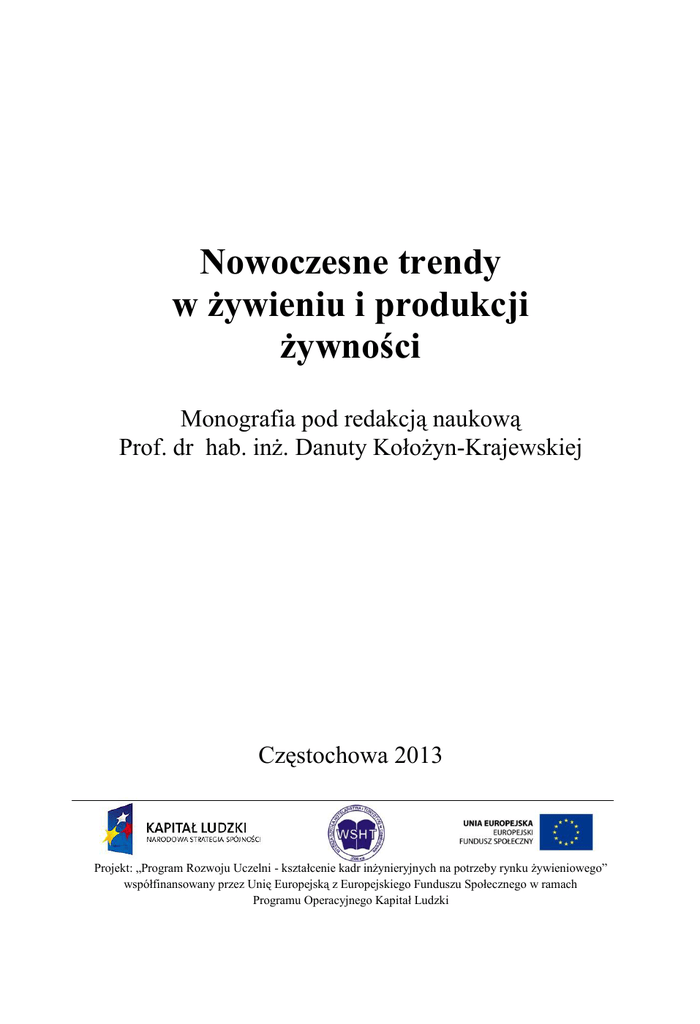 Nowoczesne trendy w żywieniu i produkcji żywności Monografia pod redakcją naukową Prof. dr hab. inż. Danuty Kołożyn-Krajewskiej Częstochowa 2013 Projekt: „Program Rozwoju Uczelni - kształcenie kadr inżynieryjnych na potrzeby rynku żywieniowego” współfinansowany przez Unię Europejską z Europejskiego Funduszu Społecznego w ramach Programu Operacyjnego Kapitał Ludzki Spis treści I. NOWOCZESNA PRODUKCJA ŻYWNOŚCI ............................................... 5 Grzesińska Wiesława, Tomaszewska Marzena Analiza rozwiązań techniczno-technologicznych zakładów gastronomicznych w aspekcie wymagań GMP/GHP ............................................................................. 6 Tomaszewska Marzena, Grzesińska Wiesława Zastosowanie technologii sous vide jako metody produkcji żywności ze szczególnym uwzględnieniem rozwiązań innowacyjnych ..................................... 24 Trafiałek Joanna, Bilska Beata Ocena realizacji systemu HACCP w wybranych przedsiębiorstwach po siedmiu latach wejścia w życie obowiązku stosowania systemu ......................................... 38 II. WSPÓŁCZESNE DIETY I ŻYWNOŚĆ DIETETYCZNA ......................... 51 Boruszewska Kinga, Sot Magdalena, Przybylski Wiesław Wybrane jednogenowe przyczyny otyłości u ludzi ................................................ 52 Goluch-Koniuszy Zuzanna, Zielińska Beata Ocena zachowań żywieniowych wegan będących w okresie prokreacji ................ 68 Ozimek Irena, Kobylińska Magdalena Źródła wiedzy o suplementach diety w opinii konsumentów................................. 84 Prączko Anna Żywność bezglutenowa w Polsce ........................................................................... 97 Michajłow Aleksej, Frołowa Marina, Pieriewozczikowa Jelena Racjonalne żywienie jako czynnik zdrowego trybu życia przyszłych pedagogów ………………………………………………………….…………….. 107 III. OCENA JAKOŚCI ŻYWNOŚCI I ŻYWIENIA ........................................ 111 Alchimowicz Michał, Przewoźny Jakub Porównanie jakości wybranych napojów energetyzujących dostępnych na rynku polskim i niemieckim ........................................................................................... 112 Bilska Beata, Trafiałek Joanna Jakość żywności regionalnej i tradycyjnej w opinii konsumentów ...................... 131 Hamułka Jadwiga, Czarniecka-Skubina Ewa, Wawrzyniak Agata, Poręcka Karolina Analiza asortymentu produktów spożywczych w sklepikach i maszynach vendingowych w szkołach podstawowych na terenie Warszawy......................... 141 Jaworska Danuta, Przybylski Wiesław, Mierzejewska Anna Porównanie jakości sensorycznej wędlin tradycyjnych na przykładzie próbek handlowych kiełbasy jałowcowej ......................................................................... 154 Pukszta Tomasz Prognozowanie zmian wielkości wycieku rozmrażalniczego mrożonych warzyw w czasie przechowywania .................................................................................... 168 3 IV. ZACHOWANIA KONSUMENTA USŁUG ŻYWIENIOWYCH............ 179 Bernd-Joachim Ertelt, Górna Joanna Preferencje i zachowania nabywcze konsumentów win w grupie wiekowej 50+ w świetle badań .................................................................................................... 180 Hałaczkiewicz Jacek, Palich Piotr Oferta gastronomiczna a preferencje konsumenta ................................................ 194 Kowalczuk Iwona, Chojnowski Paweł Preferencje singli na rynku usług gastronomicznych – wyniki badania ............... 206 Krzemińska Natalia, Mojka Katarzyna Ocena preferencji i częstotliwości spożywania potraw z ryżu ............................. 219 Mojka Katarzyna, Krzemińska Natalia Ocena świadomości żywieniowej i preferencji konsumentów w odniesieniu do żywności modyfikowanej genetycznie ................................................................. 231 Nadulski Rafał, Panasiewicz Marian, Zawiślak Kazimierz, Odzioba Michał Postrzeganie żywności ekologicznej przez mieszkańców województwa lubelskiego .......................................................................................................... 243 Olszewski Jacek, Dróżdż Remigiusz Rozpoznawalność polskiej oferty gastronomicznej, na wybranych rynkach emisyjnych ........................................................................................................... 255 Pajka Magdalena, Janicki Andrzej, Czarniecka-Skubina Ewa Ocena wpływu opakowań na zachowania nabywcze młodych konsumentów na przykładzie jogurtów ....................................................................................... 269 Panasiewicz Marian, Nadulski Rafał, Zawiślak Kazimierz, Wilczek Zygmunt, Andrejko Dariusz, Sidor Katarzyna Atrakcyjność turystyczna i ocena oferty produktowej browarów restauracyjnych z zainstalowaną mini linią produkcji piwa ........................................................... 284 4