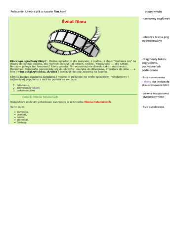 Polecenie: Utwórz plik o nazwie film.html podpowiedzi