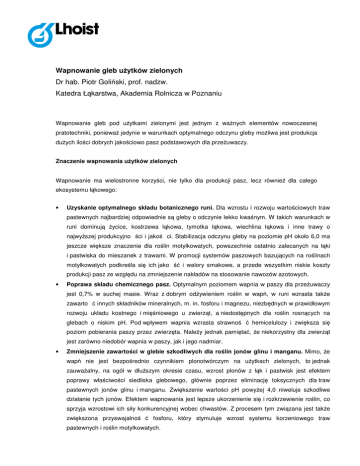 Wapnowanie gleb użytków zielonych Dr hab. Piotr Goliński