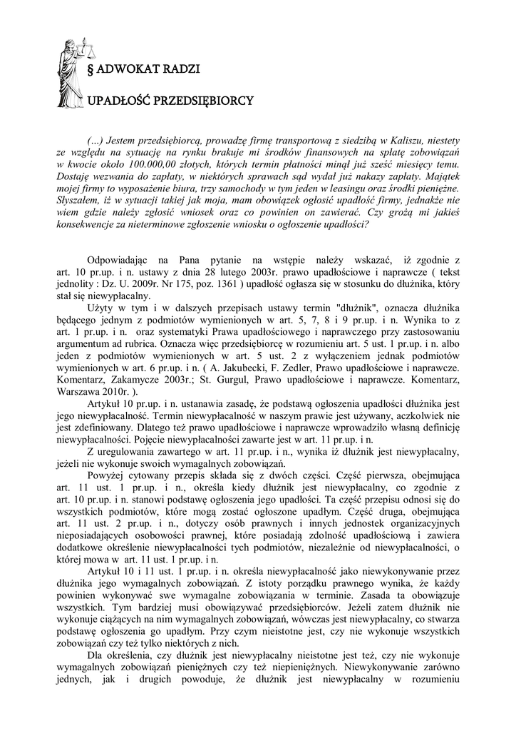 § ADWOKAT RADZI UPADŁOŚĆ PRZEDSIĘBIORCY