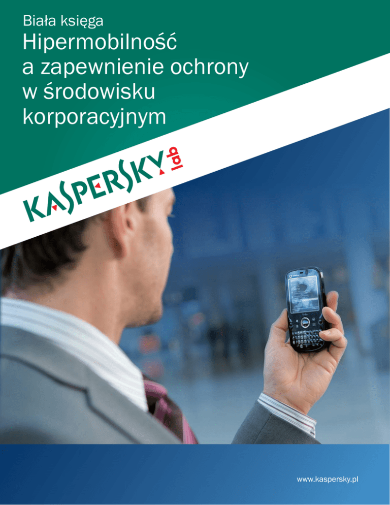 Biała księga Hipermobilność a zapewnienie ochrony w środowisku korporacyjnym www.kaspersky.pl Ochrona urządzeń mobilnych w środowiskach korporacyjnych Popularność Smartfonów wzrasta w szybkim tempie, ponieważ obecnie wiele firm wymaga, aby ich hipermobilni pracownicy pozostawali online nie tylko w biurze, ale również podczas delegacji. I viola! Rozwianiem w tej sytuacji staje się firmowy smartfon. Nowe trendy wykazują, że wiele firm oferuje swoim pracownikom, jako dodatkową zachętę, możliwość wyboru własnego urządzenia. Rozmowy telefoniczne, korespondencja e-mail, dostęp do zasobów w sieci firmowej i do Internetu - mieszczące się w kieszeni smartfony, zapewniają kompleksową komunikację. Na urządzeniach mobilnych można przechowywać znaczne ilości istotnych informacji dotyczących biznesu, a to oznacza, że smartfony stają się atrakcyjnym celem przestępców, a co za tym idzie do wycieku danych z firmy, nieautoryzowanym dostępom i infekcji szkodliwym oprogramowaniem. Sprzedaż smartfonów wyprzedziła nawet sprzedaż komputerów. Urządzenia te stają się coraz bardziej popularne zarówno wśród użytkowników korporacyjnych jak i prywatnych. Dlatego, nawet jeżeli firma nie zaopatrzy swoich pracowników w smartfony często zdarza się, że niektórzy z nich korzystają ze swoich prywatnych urządzeń do pracy. W rezultacie firmy, które nie wymagają, aby ich pracownicy korzystali ze smartfonów, zostają zobligowane do wprowadzenia tych, wykorzystywanych i dobrze znanych przez pracowników, urządzeń do celów firmowych - trend znany jako konsumeryzacja technologii informatycznych. Smartfony są małe i dlatego łatwo je zgubić lub ukraść. Po obejrzeniu się za siebie, na kanapę zdajemy sobie sprawę, że zostawiliśmy nasze urządzenie na stolikach w restauracjach i kawiarniach, w taksówkach, w samolocie lub zostało skradzione w zatłoczonym miejscu, w którym byliśmy. Tylko w Wielkiej Brytanii w 2010 roku zgłaszano kradzież 228 telefonów co godzinę [1]. Każde z nich mogło zawierać kluczowe dla firmy wiadomości e-mail, dokładne kontakty do klientów, raporty i analizy finansowe, jak również dane związane z bankowością elektroniczną. A także, ze względu na korzystanie z urządzenia zarówno w celach służbowych jak i prywatnych, dane autoryzacyjne do kont na portalach społecznościowych takich jak Facebook. Urządzenia mobilne często nie są chronione przed szkodliwymi programami, gdyż ten rodzaj zagrożeń nie jest tak dobrze spopularyzowany jak szkodliwe programy infekujące komputery, i z tego względu najczęściej ignorowane. Może to być niebezpieczne, ponieważ istnieją szkodliwe programy dla wszystkich głównych platform smartfonów. Mogą one w prosty sposób zainfekować urządzenie użytkownika i rozpocząć niejawne wysyłanie SMS-ów na płatne numery z wysoką taryfą opłat, kradnąc w ten sposób pieniądze użytkownika, podczas gdy inne programy są tak skonstruowane, by zbierać dane do nieuczciwych celów. 2 Dynamiczny rynek smartfonów Każdy, kto przygląda się dokładnie rynkowi smartfonów zauważy, że obecnie nie ma dominującego systemu operacyjnego tak jak system Windows w przypadku komputerów. Zamiast tego, z najnowszych analiz rynku prowadzonych przez firmę Canalys [2] wynika, że jest kilku wyróżniających się dostawców, którzy roszczą sobie prawo do przodowania na arenie smartfonów. Dzięki szerokiej gamie urządzeń, które obejmują spectrum ceny, platforma Android zyskała najwięcej podczas ostatniego wzrostu na rynku. Z 33,3 milionami sprzedanych telefonów Android, firma Google zapewniło sobie 32,9 procentowy udział na rynku, co czyni ją liderem. Drugiego miejsca nie zajmuje, jednak, firma Apple ze swoim wszechobecnym iPhone'm. Za Google, tuż przed Apple zdecydowanie plasuje się firma Symbian z 30,6 procentowym (31 milionów urządzeń) udziałem na rynku. Dopiero wtedy pojawia się system operacyjny iPhone iOS z 16,2 milionami urządzeń - "jedynie" 16 procentowym udziałem na rynku. Następne są urządzenia BlackBerry popularne wśród użytkowników biznesowych, z 14,4 procentowym udziałem. Na końcu firma Microsoft z obecnym systemem operacyjnym Windows – 3,1 procent. Ostatnie badania przeprowadzone przez Forbes Insights [3] wykazują proliferację tych urządzeń w biznesie. 87 procent kierowników firm w Stanach Zjednoczonych korzysta z laptopów, a 82 procent posiada również smartfony. 28 procent korzystają z dwóch urządzeń, obok BlackBerry – klasycznego urządzenia obsługującego firmową pocztę elektroniczną - posiadają również urządzenie mobilne bazujące na Androidzie lub iPhone'a. Smartfon to urządzenie do komunikowania się wybierane przez ponad połowę badanych. Jest to niezwykły wyczyn jak dla urządzenia, które, jak wiemy, nawet nie istniało do 2000 roku. Windows Mobile 3.1% RIM (BlackBerry) 14.4% Android 32.9% iOS 16.0% Symbian 30.6% 3 Ochrona smartfonów jest koniecznością W grudniu 2010 badania Threatpost wykazały, że 69% firm nie korzysta z oprogramowania zabezpieczającego dla smartfonów, choć 60% ankietowanych firm już doświadczyło ataku lub zetknęło się z zagrożeniem na swoich urządzeniach [4]. Takie podejście może spowodować katastrofę. Dlaczego firmy powinny włączyć smartfony do swoich strategii ochrony? Najprościej odpowiedzieć, że smartfony mają wiele zastosowań, co sprawia iż ochrona tej platformy jest bardzo istotna. Smartfony są najczęściej wykorzystywane w firmach do uzyskania dostępu do sieci komunikacyjnej - jako główny telefon i system korespondencji e-mail, ale również (i to coraz częściej) inny system wymiany informacji, łącznie z systemami zarządzania terminarzem. Umożliwiają uzyskanie kompleksowego dostępu do bazy danych z informacjami kontaktowymi oraz systemów zamówień. W takich przypadkach musi być zapewniona tajność, tak istotnych dla firmy, danych. Os
