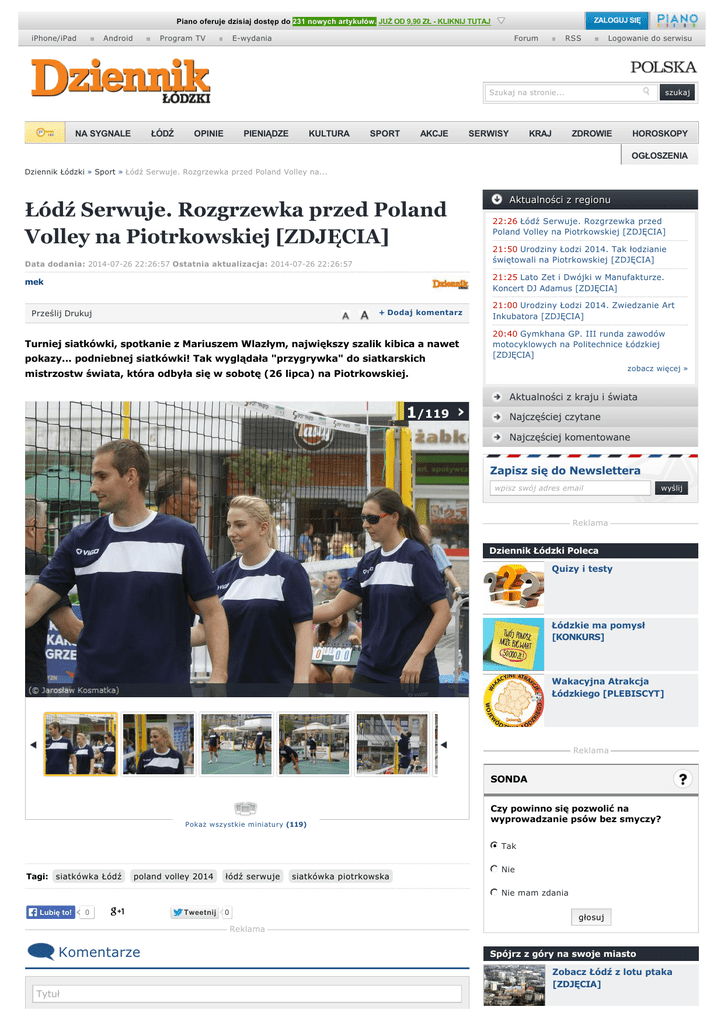 ZALOGUJ SIĘ Piano oferuje dzisiaj dostęp do 231 nowych artykułów. JUŻ OD 9,90 ZŁ - KLIKNIJ TUTAJ iPhone/iPad Android Program TV E-wydania Forum RSS Logowanie do serwisu Szukaj na stronie... NA SYGNALE ŁÓDŹ OPINIE PIENIĄDZE KULTURA SPORT AKCJE SERWISY KRAJ szukaj ZDROWIE HOROSKOPY OGŁOSZENIA Dziennik Łódzki » Sport » Łódź Serwuje. Rozgrzewka przed Poland Volley na... Łódź Serwuje. Rozgrzewka przed Poland Volley na Piotrkowskiej [ZDJĘCIA] Data dodania: 2014-07-26 22:26:57 Ostatnia aktualizacja: 2014-07-26 22:26:57 Aktualności z regionu 22:26 Łódź Serwuje. Rozgrzewka przed Poland Volley na Piotrkowskiej [ZDJĘCIA] 21:50 Urodziny Łodzi 2014. Tak łodzianie świętowali na Piotrkowskiej [ZDJĘCIA] 21:25 Lato Zet i Dwójki w Manufakturze. Koncert DJ Adamus [ZDJĘCIA] mek Prześlij Drukuj + Dodaj komentarz Turniej siatkówki, spotkanie z Mariuszem Wlazłym, największy szalik kibica a nawet pokazy... podniebnej siatkówki! Tak wyglądała "przygrywka" do siatkarskich 21:00 Urodziny Łodzi 2014. Zwiedzanie Art Inkubatora [ZDJĘCIA] 20:40 Gymkhana GP. III runda zawodów motocyklowych na Politechnice Łódzkiej [ZDJĘCIA] zobacz więcej » mistrzostw świata, która odbyła się w sobotę (26 lipca) na Piotrkowskiej. Aktualności z kraju i świata 1/119 › Najczęściej czytane Najczęściej komentowane Zapisz się do Newslettera wpisz swój adres email wyślij Reklama Dziennik Łódzki Poleca Quizy i testy Łódzkie ma pomysł [KONKURS] Wakacyjna Atrakcja Łódzkiego [PLEBISCYT] Reklama SONDA Pokaż wszystkie miniatury (119) Czy powinno się pozwolić na wyprowadzanie psów bez smyczy? Tak Tagi: siatkówka Łódź poland volley 2014 łódź serwuje siatkówka piotrkowska Nie Nie mam zdania Lubię to! 0 Tweetnij 0 głosuj Reklama Komentarze Spójrz z góry na swoje miasto Zobacz Łódź z lotu ptaka [ZDJĘCIA] Tytuł Panorama Łodzi widziana z lotu ptaka [ZDJĘCIA] Podpis Treść komentarza Zobacz Manufakturę z lotu ptaka [ZDJĘCIA] Dodajesz jako: Gość Ilość znaków do wpisania: 3984 Dodając komentarz, akceptujesz regulamin forum zaloguj się dodaj Zobacz archiwalne zdjęcia Łodzi DZIENNIK ŁÓDZKI Aktualne wydanie: Dawna Łódź na fotografiach [ZDJĘCIA] Prenumerata: Dział Sprzedaży Domowej 90-532 Łódź ul. ks. I. Skorupki 17/19 pn-pt 8.00 - 17.00 tel.: 42 66-59-360, fax: 42 637-75-11 e-mail: [email protected] dz.pl Reklama: Dawna Łódź na pocztówkach [ZDJĘCIA] Kontakt z redakcją: Dział Sprzedaży Reklam Łódź 90-532 ul. ks. hm. I. Skorupki 17/19 Infolinia: 800 472 852; 42 64 72 852 Biuro ogłoszeń (Skorupki) 42 66 59 455 Biuro reklamy: tel. 42 6659-430, fax: 42 66-59437 Polska Dziennik Łódzki ul. ks. I. Skorupki 17/19 90-532 Łódź, tel.: 42 66-59-100 e-mail: [email protected] EC1 - ARCHIWALNE ZDJĘCIA [PONAD 250 FOTOGRAFII] O nas Reklama i biura sprzedaży ogłoszeń Dziennik Łódzki Like 15,216 people like Dziennik Łódzki. Aktualne cenniki ogłoszeń Serwisy branżowe: Ogłoszenia Mieszkania Łódź Domy Łodź Motoryzacja Samochody Łódź Praca Oferty pracy Łodź Ogłoszenia drobne Mapa serwisu Indeks Serwisy partnerskie: Grupa Wydawnicza Polskapresse Informacje lokalne Łódź Wiadomości Program TV Polskatimes Samochody Piłka nożna Dla prasy O nas Regulamin Prywatność Reklama Dzienniki regionalne: Najnowsze informacje Aktualności www.dziennikbaltycki.pl Wiadomości Śląsk Dziennik Polski Wiadomości Lublin Wiadomości Kraków Wiadomości Wrocław Wiadomości Poznań Express Ilustrowany eGazety Sklep internetowy Newsletter © 2000 - 2014 Polskapresse Sp. z o.o. Polskapresse sp. z.o.o informuje, że wszystkie treści ukazujące się w serwisie Dzienniklodzki.pl podlegają ochronie. Dowiedz się więcej. Jesteś zainteresowany kupnem treści? Dowiedz się więcej.