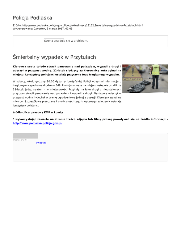 Policja Podlaska Śmiertelny wypadek w Przytułach