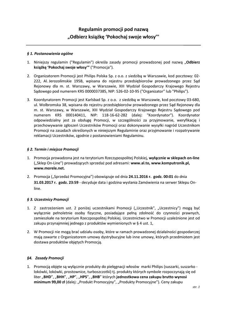 Sądowego pod numerem KRS 0000037385, NIP: 526-02-10-95 ("Organizator" lub "Philips").