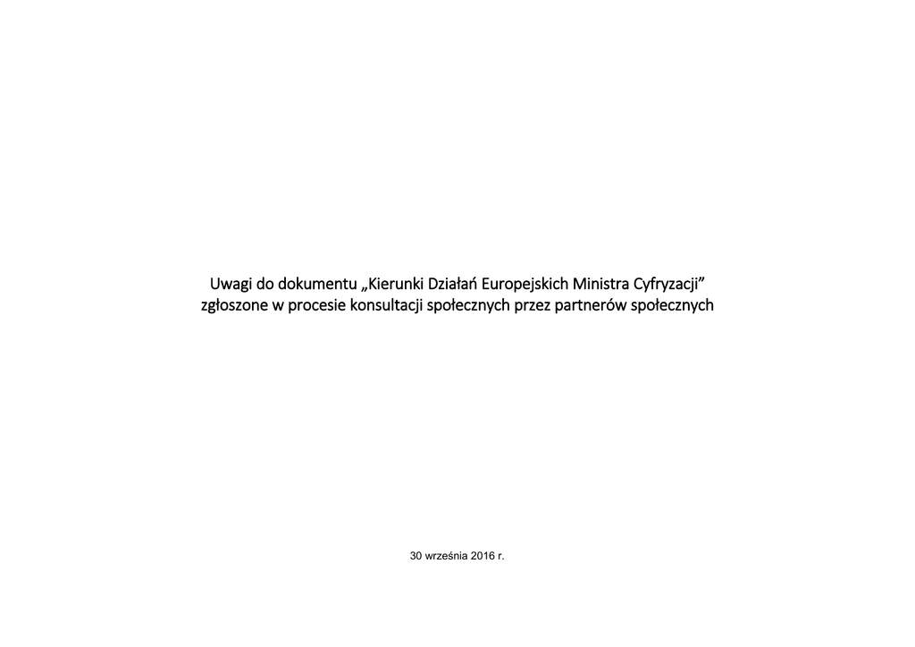 Uwagi do dokumentu „Kierunki Działań Europejskich Ministra Cyfryzacji”