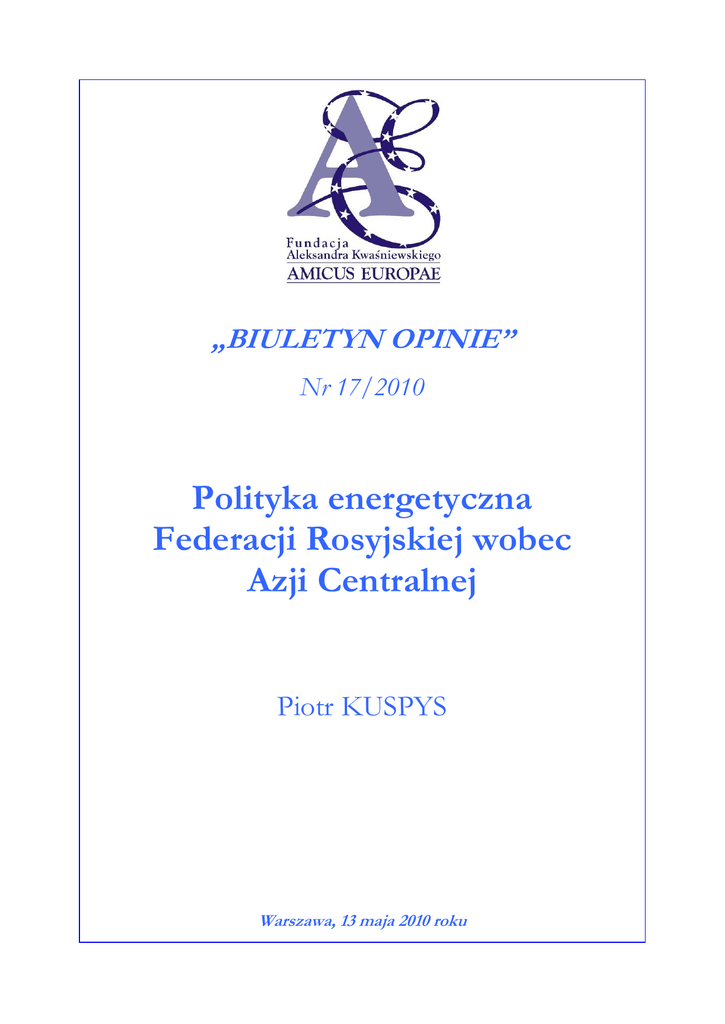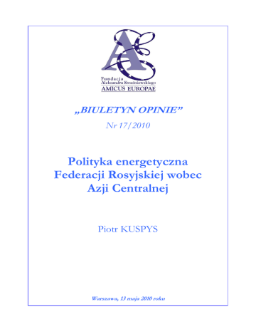 „BIULETYN OPINIE” Nr 17/2010 Polityka energetyczna Federacji Rosyjskiej wobec Azji Centralnej Piotr KUSPYS Warszawa, 13 maja 2010 roku Gdy w 1991 roku, pod presją osłabienia gospodarczego i ścierających się wizji ZSRR, imperium radzieckie nieoczekiwanie rozpadło się, dotychczasowy dwubiegunowy system współpracy międzynarodowej legł w gruzach. Istniejący (umowny) podział świata oparty na zrównowaŜonym potencjale jądrowym ZSRR i USA nie miał juŜ racji bytu. W zaistniałych okolicznościach, pomimo iŜ osłabł wyścig zbrojeń, zwiększyło się ryzyko konfliktów militarnych na świecie. Powstawanie nowych państw mogło wywołać falę przemocy i walkę o terytorium, stąd teŜ Rosja wzięła na siebie odpowiedzialność za utrzymanie pokoju na przestrzeni postradzieckej, wysyłając swoje wojska w najbardziej niestabilne regiony. Było te jednak podyktowane przede wszystkim chęcią utrzymania swoich wpływów politycznych i gospodarczych, aniŜeli rzeczywistą troską o pokojowy rozpad imperium. W ramach ZSRR między państwami członkowskimi istniały silne powiązania gospodarcze, które determinowały istnienie i rozwój wielu gałęzi przemysłu. Była to celowa polityka prowadzona przez Kreml po drugiej wojnie światowej. Moskwa chciała kontynuować tę strategię równieŜ w nowych warunkach politycznych, licząc, Ŝe uda się reanimować upadające imperium. W tym właśnie celu, między innymi, powołano Wspólnotę Niepodległych Państw, do której przystąpiły Rosja, Ukraina, Białoruś, AzerbejdŜan, Armenia, Kazachstan, Kirgizja, Mołdawia, TadŜykistan, Turkmenistan i Uzbekistan. Według załoŜeń formalnych, WNP miała być formą pokojowej dezintegracji Związku Radzieckiego i uporządkowania współpracy gospodarczej pomiędzy republikami poradzieckimi. W praktyce jednak sygnatariusze porozumienia powołującego WNP mieli nieco inne oczekiwania. O ile zamiarem Ukrainy i Białorusi – załoŜycieli WNP – było pokojowe rozwiązanie ZSRR i zminimalizowanie negatywnych skutków jego niekontrolowanej dezintegracji, Rosja dąŜyła do utworzenia regionalnej organizacji międzynarodowej. Kreml wszelkimi moŜliwymi sposobami chciał nakłonić pozostałe państwa członkowskie do przyjęcia rosyjskiej koncepcji, co jednak nie udało się. Niemniej jednak większość kontaktów politycznych szefów państw byłego ZSRR odbywały się przy okazji spotkań i prac organów WNP. W ten sposób Kreml chciał kontrolować najwaŜniejsze kwestie współpracy wielostronnej i dwustronnej. Przeciwstawiając się reintegracyjnym działaniom Rosji wiele państw azjatyckich zgodziło się na jej dominującą pozycję. Nie było to jednak podyktowane szczerą chęcią, lecz koniecznością. Moskwa bowiem ma „w rękawie” asa w postaci rurociągów przebiegających przez jej terytorium, a którymi z Azji do Europy płyną surowce energetyczne. Stąd teŜ, wskutek wieloletniej polityki szantaŜu, rosyjskie plany reintegracyjne powiodły się, ale tylko częściowo. Wspólnota Niepodległych Państw bowiem nadal ma niejasny status prawny. Nie jest to ani organizacja międzynarodowa, ani struktura ponadnarodowa, a jedynie ugrupowaniem państw o róŜnym stopniu integracji i współpracy. Niemniej jednak w ramach Wspólnoty utworzono całą strukturę administracyjną, przypominającą 2 po części NATO, jeśli chodzi o współpracę wojskową, a po części Unię Europejską, kładąc nacisk na swobodę przepływu towarów, usług, osób i informacji. Ustanowiono między innymi Radę Szefów Państw WNP, Radę Szefów Rządów WNP, Radę Szefów Ministrów Spraw Zagranicznych WNP. Decyzje podjęte przez te gremia nie mają jednak wiąŜącej mocy prawnej. KaŜde z państw przestrzega tylko te normy, na które wyraŜa zgodę (www.kwasniewskialeksander.pl/attachments/BIULETYN_OPINIE_WNP_wczoraj_i_dzis.pdf) KAZACHSTAN Polityka gospodarcza Federacji Rosyjskiej wobec państw Azji Środkowej jest częścią większej strategii energetycznej Kremla. Zainteresowanie tym obszarem jest podyktowane chęcią uzyskania kontroli nad bogactwami naturalnymi, którą Kreml stracił wskutek dezintegracji ZSRR. Nowa sytuacja polityczna, z dominującą pozycją Rosji, stwarzała nowe moŜliwości zarówno dla państw azjatyckich, jak i dla Moskwy. Najbardziej obiecująco zapowiadała się współpraca z Kazachstanem, który jeszcze w ramach ZSRR był mocno związany z Kremlem. To właśnie w Kazachstanie ulokowano głowice nuklearne oraz wybudowano kosmodrom Bajkonur, będący chlubą radzieckiej kosmonautyki. Stąd teŜ nic dziwnego, Ŝe w referendum z dnia 17 marca 1991 roku w sprawie przyszłości ZSRR, aŜ 94 proc. Kazachów opowiedziało się za utrzymaniem sojuszu, podczas gdy średnia w całym Związku Radzieckim nie przekroczyła 77 proc. Kazachstan był takŜe ostatnią republiką, która ogłosiła niepodległość. W kolejnych latach kraj ten chętnie przyłączał się do wszelkich inicjatyw integracyjnych wysuwanych przez Kreml. W 1992 roku, wraz z Uzbekistanem, przystąpił do traktatu o bezpieczeństwie zbiorowym. Zgodził się takŜe na wspólną ochronę granic zewnętrznych WNP. W 1993 roku Astana została sygnatariuszem umowy powołującej Wspólnotę Gospodarczą. W konsekwencji, tworzone przez Rosję organizacje i instytucje oplatały Kazachstan i pozostałe kraje Azji Środkowej jak pajęczyna. Kazachowie liczyli, Ŝe WNP będzie tym samym, co ZSRR: Ŝe zostaną utrzymane powiązania polityczne, militarne i gospodarcze. To właśnie Kazachstan w pierwszej połowie lat dziewięćdziesiątych wystąpił z inicjatywą utworzenia Unii Eurazjatyckiej; zabiegał takŜe o utworzenie jednolitych sił zbrojnych. W tym celu podpisał ponad 20 umów międzynarodowych, głównie z Rosją. W 1995 roku Kazachstan przyłączył się do Unii Celnej zainicjowanej przez Rosję i Białoruś, zaś w 2000 roku był członkiem załoŜycielskim Eurazjatyckiej Wspólnoty Gospodarczej