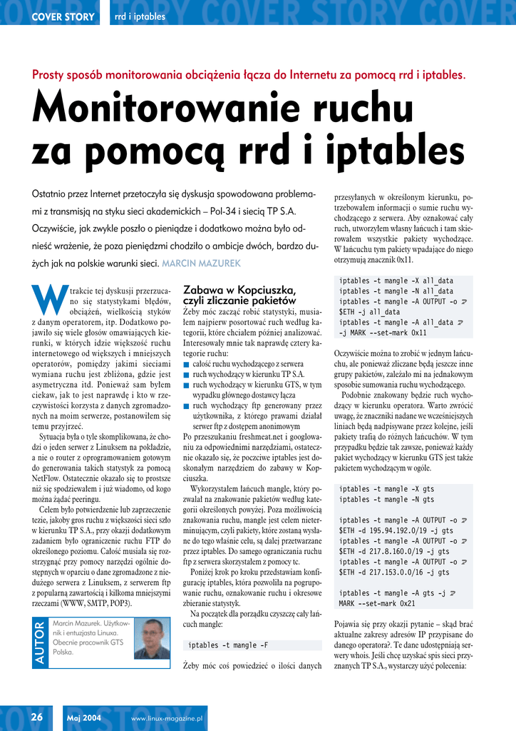 Poniżej krok po kroku przedstawiam konfigurację iptables, która pozwoliła na pogrupowanie ruchu, oznakowanie ruchu i okresowe