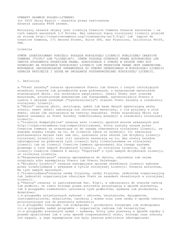 COMMONS ("CCPL" LUB "LICENCJA"). UTWÓR PODLEGA OCHRONIE PRAWA AUTORSKIEGO LUB