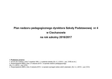 Plan nadzoru pedagogicznego dyrektora Szkoły Podstawowej nr 4