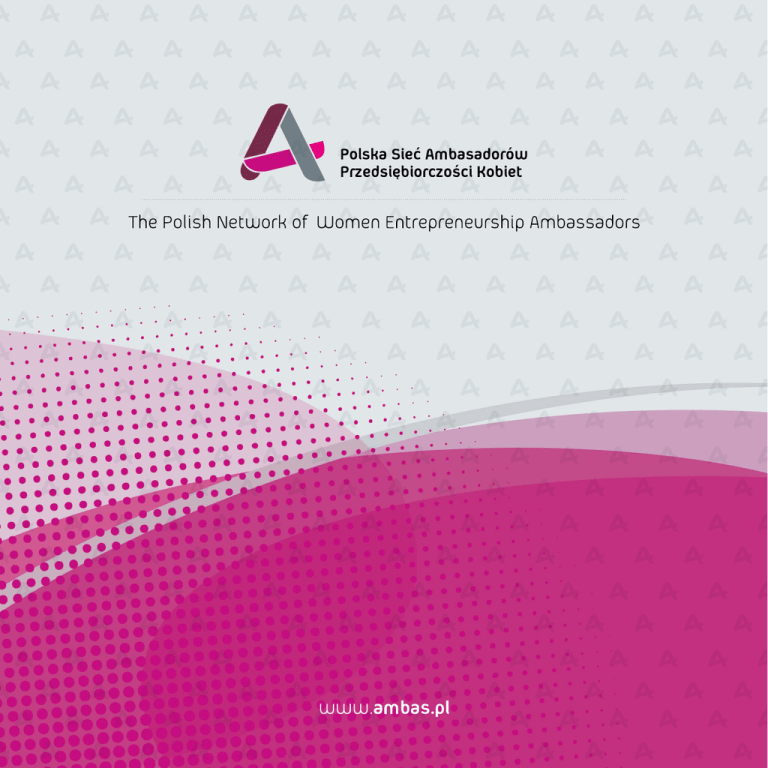 Dziękujemy Partnerom projektu Polska Sieć Ambasadorów Przedsiębiorczości Kobiet C M Embassy for Women Entrepreneurship thanks our sponsors Y CM MY CY CMY K TŁUMACZENIA ONLINE Urszula Ciołeszyńska Założycielka i Prezes Fundacji Ambasada Przedsiębiorczości Kobiet www.ambas.pl Nominowana przez Komisję Europejską w 2009 r. na Ambasadora Europejskiej Sieci Przedsiębiorczości Kobiet, założyła w Polsce fundacje, które promują przedsiębiorczość wśród kobiet. Od 11 lat właścicielka Agencji Promocji Gospodarczej, specjalizującej się w finansowaniu inwestycji ze środków UE. Członek Lions Clubs International. Za działalność społeczną na arenie międzynarodowej otrzymała tytuł Ambasadora Dobrej Woli Międzynarodowego Stowarzyszenia Klubów Lions. Nominated by European Commission as an Ambassador of The European Network of Women Entrepreneurship Ambassadors in 2009. Founder of Foundations dedicated to promoting female entrepreneurship. She runs her own small company which she created from the scratch. Her Economic Promotion Agency specializes in providing comprehensive advisory services to new and existing businesses. Member of the International Association of Lions Clubs and Ambassador of Goodwill of Lions Clubs International. Ambasada Przedsiębiorczości Kobiet Polska Sieć Ambasadorów Przedsiębiorczości Kobiet Polska Sieć Ambasadorów Przedsiębiorczości Kobiet jest wzorowana na Europejskiej Sieci Ambasadorów Przedsiębiorczości Kobiet stworzonej przez Komisję Europejską w 2009 r. Skupia ona Panie, które odnoszą sukcesy prowadząc swoje firmy oraz angażują się w pozabiznesową działalność społeczną. Misją Ambasadora Przedsiębiorczości Kobiet w Polsce jest służyć własnym przykładem i promować przedsiębiorczość, innowacyjność i nową świadomość niezbędną dla rozwoju nowoczesnej gospodarki. Promujemy dobre wzorce zgodnie z naszym hasłem “Odniosłaś sukces – bądź wzorem dla innych”. Inicjatorem i organizatorem projektu Polska Sieć Ambasadorów Przedsiębiorczości Kobiet jest fundacja Ambasada Przedsiębiorczości Kobiet. We współpracy z Klubem Przedsiębiorców i Ekspertów działającym przy Zarządzie Krajowym Polskiego Towarzystwa Ekonomicznego w Warszawie co roku nominowanych jest kolejnych 100 Ambasadorów Przedsiębiorczości Kobiet, wybieranych spośród grona najbardziej przedsiębiorczych Pań, które podejmą wyzwanie wspierania i inspirowania innych kobiet do zakładania i rozwijania swoich własnych firm. Certyfikaty dla pierwszych 100 Ambasadorów Przedsiębiorczości Kobiet w Polsce wręczono dokładnie w rocznicę uchwalenia przez Parlament Europejski rezolucji w sprawie przedsiębiorczości kobiet w MŚP. Embassy for Women Entrepreneurship (Poland) The Polish Network of Women Entrepreneurship Ambassadors The Polish Network of Women Entrepreneurship Ambassadors is organized in order to increase the number of companies established and run by women in Poland. It was inspired by the European Commission’s project of 2009 - European Network of Female Entrepreneurship Ambassadors which focuses on providing role models that will inspire and encourage women to set up their own business. The mission of the Polish Women Entrepreneurship Ambassadors, which is the same as in the European Network of Female Entrepreneurship Ambassadors, is to promote enterprise among women as well as to motivate and support them to employ their skills and passions in order to create and establish new values. Embassy for Women Entrepreneurship customized this project for the specific needs, expectations and possibilities that we have in Poland. In cooperation with the Entrepreneurs and Experts Club at the National Board of the Polish Economic Society, the Embassy for Women Entrepreneurship Foundation nominates every year 100 Women Entrepreneurship Ambassadors chosen amongst the most enterprising women, who will serve as role models for the next generation of female business leaders. The first hundred ambassadors were nominated one year after European Parliament resolution on women’s entrepreneurship in small and medium-sized enterprises was adopted. 2012 r. (13.09) Warszawa 100 Ambasadorów Przedsiębiorczości Kobiet September 13th 2012 Warsaw 100 Women Entrepreneurship Ambassadors 2013 r. (16.09) Katowice 100 Ambasadorów Przedsiębiorczości Kobiet. September 16th 2013 Katowice 100 Women Entrepreneurship Ambassadors 2014 r. (19.09) Warszawa 100 Ambasadorów Przedsiębiorczości Kobiet September 19th 2014 Warsaw 100 Women Entrepreneurship Ambassadors Z uwagi na ogólnopolski zasięg i ważne dla gospodarki cele projekt uzyskał Patronat Ministra Gospodarki. Due to the nationwide scope, ambitious targets and a strong institutional basis, the project received the Honorary Patronage of Minister of Economy. www.ambas.pl 1 Why does investing in women entreprenurship matter? Dlaczego inwestowaæ w entreprenurship przedsiêbiorczoœæmatter? kobiet? Why doeswarto investing in women Dlaczego warto inwestowaæ w przedsiêbiorczoœæ kobiet? $20 $20 Women control more than trillion or about Women control more than trillion or global about consumer spending of of global consumer spending Women represent of the global workforce. Women represent Globalisation and trade play a critical role of the global workforce. 70 % 70 % 40% 40% in reducing barriers to achieving greater Globalisation and trade play a critical role gender equality in reducing barriers to achieving greater gender equality 52% 52% Women constitute of the total European population Women constitute but only of the self-employed of the total European population but only of the self-employed or of all business starters in the EU. Women thus represent or of all business startersa large in thepool EU. of entrepreneurial potential in Europe. Women thus represent a large pool of entrepreneurial potential in Europe. 33% 33% o wartoœci o wartoœci Kobiety decyduj¹ o wydatkach