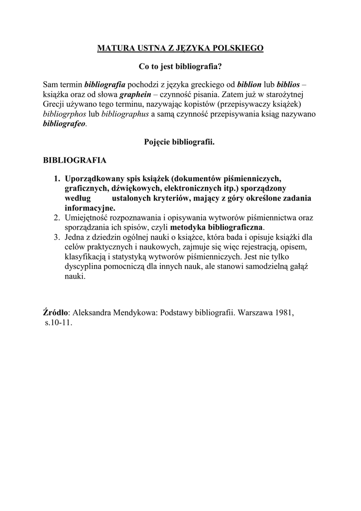 MATURA USTNA Z JĘZYKA POLSKIEGO Co to jest bibliografia