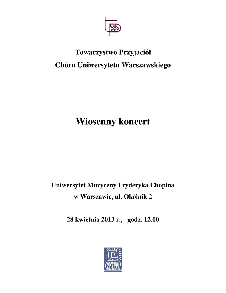 program koncertu - Amici Canentes Towarzystwo Przyjaciół Chóru UW