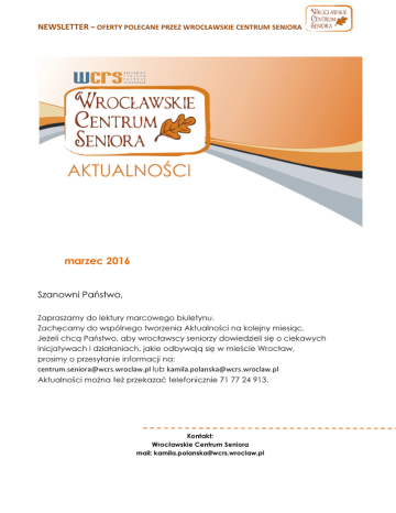 NEWSLETTER – OFERTY POLECANE PRZEZ WROCŁAWSKIE CENTRUM SENIORA