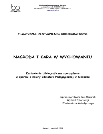 nagroda i kara w wychowaniu - Biblioteka Pedagogiczna w Sieradzu