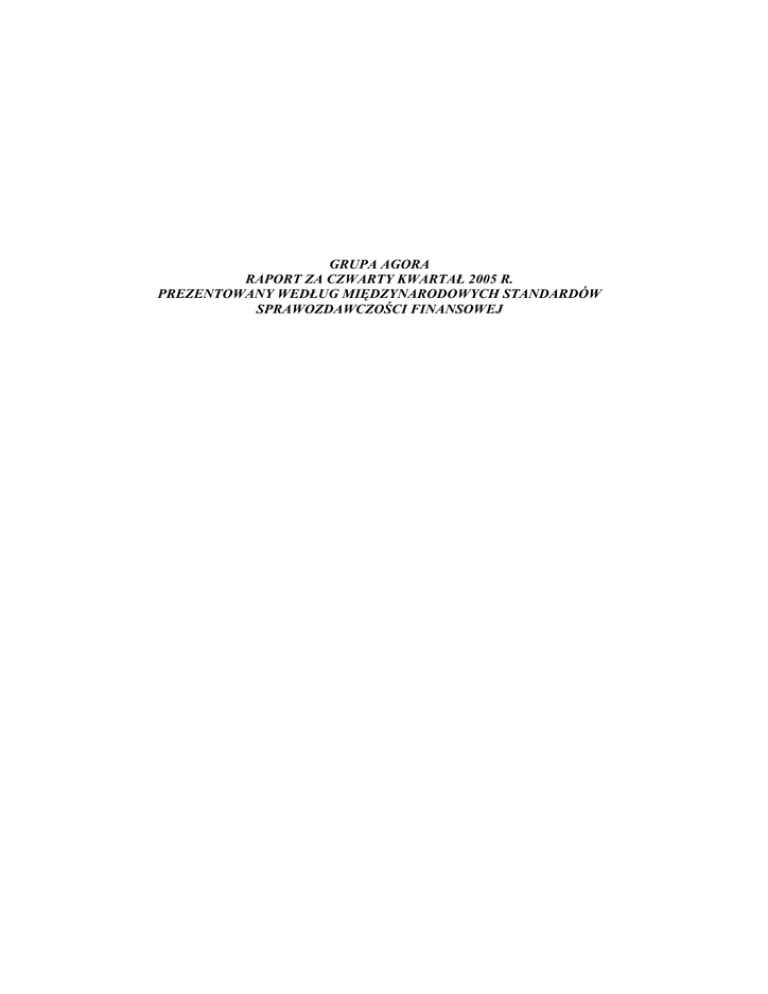 RAPORT ZA CZWARTY KWARTAŁ 2005 R.