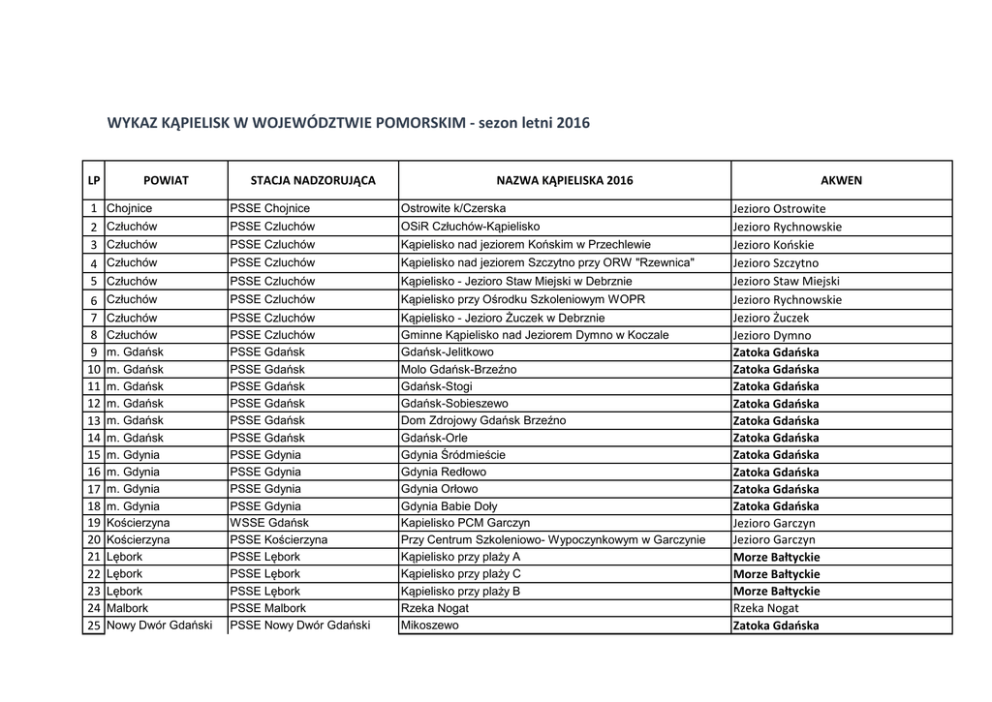 WYKAZ KĄPIELISK W WOJEWÓDZTWIE POMORSKIM
