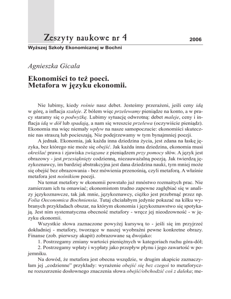 Ekonomiści to też poeci. Metafora w języku ekonomii