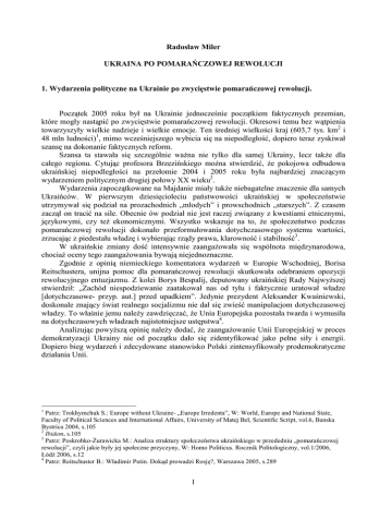 1 Radosław Miler UKRAINA PO POMARAŃCZOWEJ REWOLUCJI 1