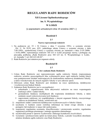 Regulamin Rady Rodziców - XII Liceum Ogólnokształcące w Łodzi