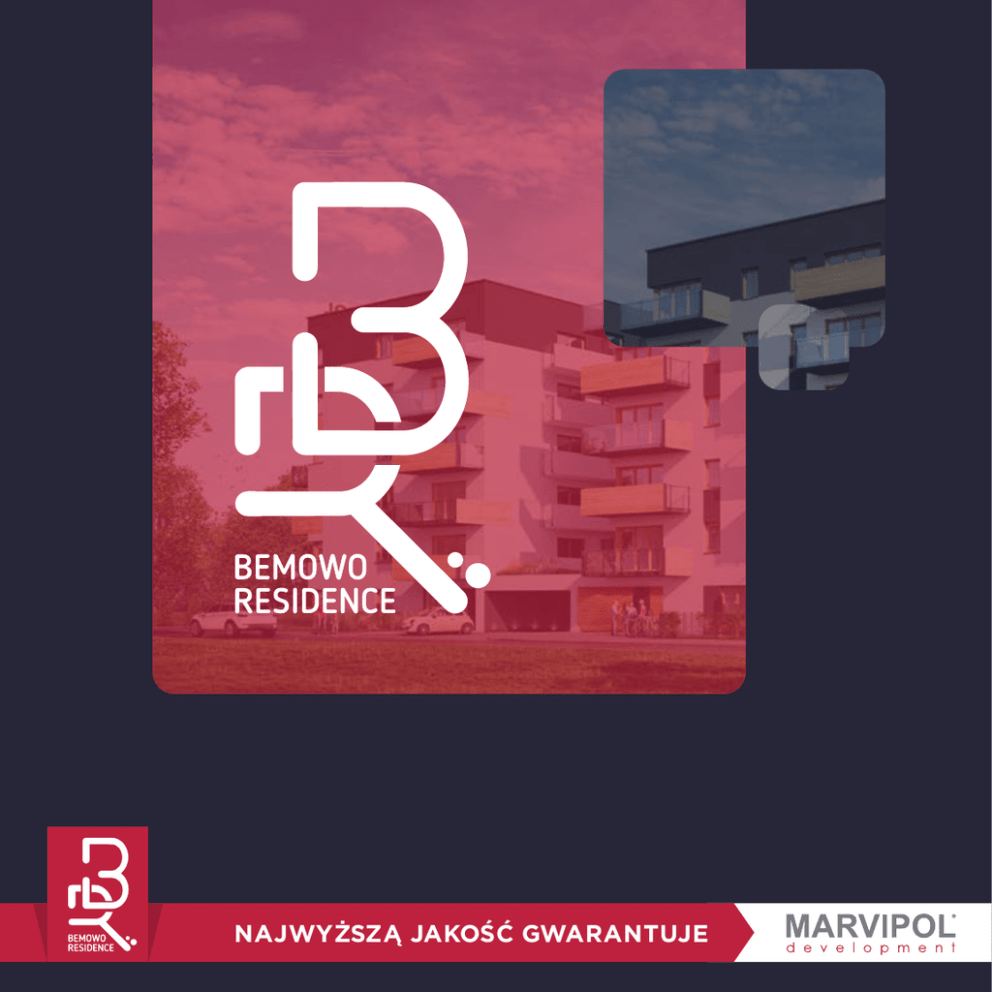 NAJWYŻSZĄ JAKOŚĆ GWARANTUJE Bemowo Residence - Twój apartament z widokiem na park zbiegu ulic Szeligowskiej i Połczyńskiej powstaje kameralny projekt Bemowo Residence – jedynie 104 lokale. U Oferta, najchętniej wybieranych 2 i 3 pokojowych lokali zaprojektowana została odpowiednio na metrażach: 42-49 m² i 55-67 m². Niska zabudowa, wysoki standard czy nowoczesne części wspólne to tylko kilka z atutów inwestycji. Docenią je osoby szukające ciszy i spokoju na osiedlu o ograniczonej liczbie lokali. Dodatkowo lokalizacja w bocznej, spokojnej uliczce nieopodal parku spodoba się młodym rodzinom. Kameralnie, wygodnie, z klasą - tak jak chcesz mieszkać owocześnie zaprojektowane przestrzenie wspólne sprawiają, że budynek Bemowo Residence jest funkcjonalny i wygodny. N Wysoki standard inwestycji podkreślony został dodatkowo eleganckim wykończeniem klatek schodowych oraz prywatną całodobową recepcją. Front budynku, oprócz eleganckiej elewacji posiada przeszklone balkony. Aby zapewnić bezpieczeństwo dla dzieci, na osiedlu wprowadzony został podziemny ruch kołowy. Całe osiedle jest strzeżone i monitorowane. Spółdzielnia Mieszkaniowa Gimnazjum nr 81 Jelonki PD Przedszkole nr 75 Fort Chrzanów Al Pomodoro Serwis samochodowy Lukoil Auto GT Selgros Komunikacja - teraz i w przyszłości Lokalizacja inwestycji pozwala na dogodny dojazd do biznesowych rejonów Warszawy. Dojazd samochodem czy komunikacją miejską do centrum zajmie zaledwie 10 minut. Komunikacja miejska oferuje dogodne połączenia autobusowe (linie 105, 112, 197, 713, 743, E-5, N42, N45), ponadto planowana jest w przyszłości druga linia metra (odcinek IID - przystanek metra Połczyńska). Dogodny dojazd do centrum umożliwiają: dobrze rozwinięta sieć dróg, zaś za kilka lat - II linia metra. Do najważniejszych arterii należą ulice: Połczyńska, Górczewska, Nowolazurowa oraz Powstańców Śląskich. Infrastruktura - tego oczekujesz rzestrzenie zieleni wyznaczają: Park Leśny Bemowo, Park Górczewska z amfiteatrem, Park przy Starych Jelonkach oraz liczne skwery. P Nie brak także infrastruktury usługowo-edukacyjnej. W najbliższej okolicy inwestycji znajdziemy 2 szkoły podstawowe oraz 2 przedszkola publiczne, 3 restauracje, piekarnię, oraz sklepy Żabka i Carrefour Express. Natomiast w sąsiedztwie inwestycji znajdziemy między innymi: aptekę, niepubliczną przychodnię zdrowia, ośrodek fitness oraz ścieżki rowerowe. Dzielnica z potencjałem - tak jak lubisz nwestycja znajduje się w warszawskiej dzielnicy Bemowo w rejonie ulicy Szeligowskiej, odchodzącej od ul. Połczyńskiej. Bemowo, dzielnica położona u zachodnich granic Warszawy, to prężnie rozwijający się rejon. I Dlaczego? Mieszka tu ponad 110 tysięcy ludzi, z czego 60% to osoby poniżej 30 roku życia! Okolice ulicy Szeligowskiej i Połczyńskiej oraz Chrzanów są przedmiotem zainteresowania deweloperów, co sprawia, że powstanie tu swoiste miasteczko w mieście i przybędzie młodych mieszkańców. Mieszkanie dla singla Rozkład mieszkania pozwala na funkcjonalną aranżację. Lokal tak zaprojektowano, by zaoszczędzić przestrzeń (m.in. dzięki licznym schowkom). 27 m 2 55 m2 Mieszkanie dla pary/młodej rodziny W przyszłości będzie Was troje? Już dziś tak zaplanuj mieszkanie, by za jakiś czas łatwo wydzielić dodatkową przestrzeń dla nowego domownika. Doświadczenie, wiarygodność, spokój - to kupujesz w pakiecie arvipol to solidny deweloper wyznaczający standardy współczesnego budownictwa wielorodzinnego. M Dwudziestoletnie doświadczenie, 484 000 m² wybudowanych ponad 8 000 lokali mieszkalnych i usługowych, niezawodność i przywiązanie do jakości sprawiają, że każda oddana inwestycja to gwarancja komfortu i bezpieczeństwa na każdym etapie jej zakupu. Biuro Sprzedaży Bemowo Residence ul. Prosta 32 00 - 838 Warszawa Tel. 22 536 50 55 www.bemoworesidence.pl