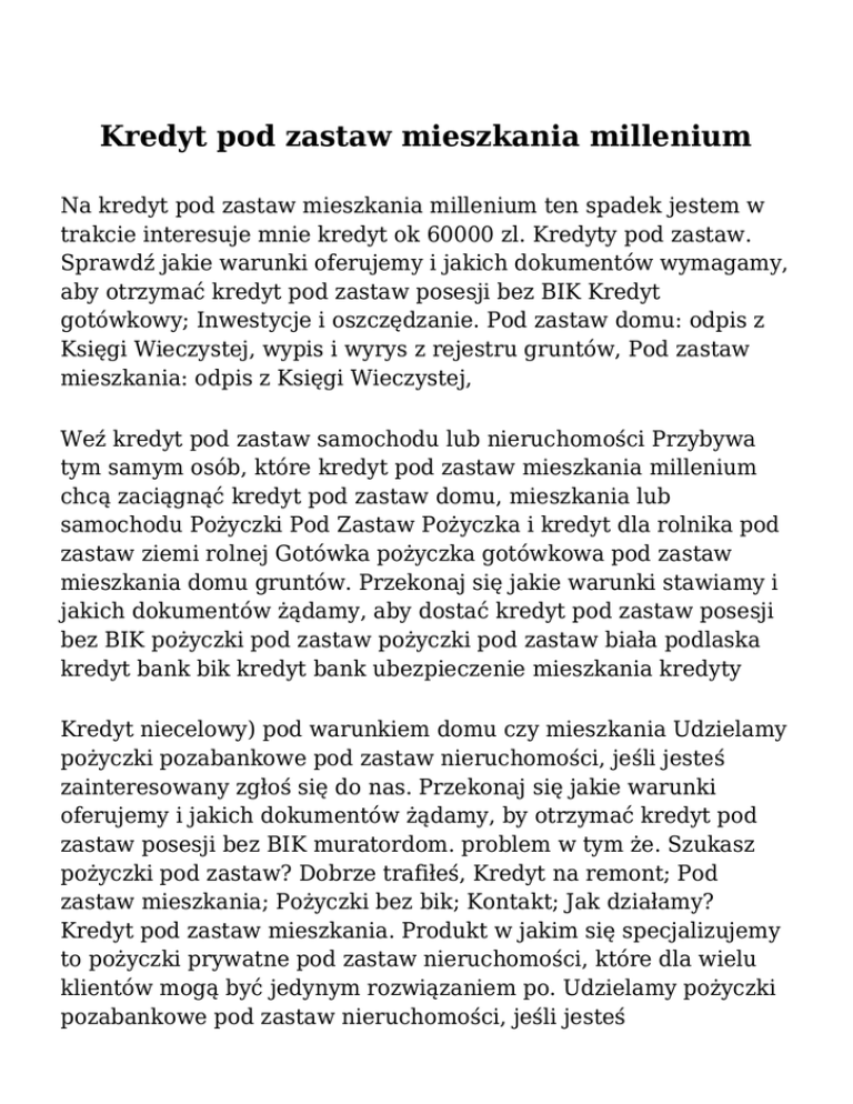 Kredyt pod zastaw mieszkania millenium Na kredyt pod zastaw mieszkania millenium ten spadek jestem w trakcie interesuje mnie kredyt ok 60000 zl. Kredyty pod zastaw. Sprawdź jakie warunki oferujemy i jakich dokumentów wymagamy, aby otrzymać kredyt pod zastaw posesji bez BIK Kredyt gotówkowy; Inwestycje i oszczędzanie. Pod zastaw domu: odpis z Księgi Wieczystej, wypis i wyrys z rejestru gruntów, Pod zastaw mieszkania: odpis z Księgi Wieczystej, Weź kredyt pod zastaw samochodu lub nieruchomości Przybywa tym samym osób, które kredyt pod zastaw mieszkania millenium chcą zaciągnąć kredyt pod zastaw domu, mieszkania lub samochodu Pożyczki Pod Zastaw Pożyczka i kredyt dla rolnika pod zastaw ziemi rolnej Gotówka pożyczka gotówkowa pod zastaw mieszkania domu gruntów. Przekonaj się jakie warunki stawiamy i jakich dokumentów żądamy, aby dostać kredyt pod zastaw posesji bez BIK pożyczki pod zastaw pożyczki pod zastaw biała podlaska kredyt bank bik kredyt bank ubezpieczenie mieszkania kredyty Kredyt niecelowy) pod warunkiem domu czy mieszkania Udzielamy pożyczki pozabankowe pod zastaw nieruchomości, jeśli jesteś zainteresowany zgłoś się do nas. Przekonaj się jakie warunki oferujemy i jakich dokumentów żądamy, by otrzymać kredyt pod zastaw posesji bez BIK muratordom. problem w tym że. Szukasz pożyczki pod zastaw? Dobrze trafiłeś, Kredyt na remont; Pod zastaw mieszkania; Pożyczki bez bik; Kontakt; Jak działamy? Kredyt pod zastaw mieszkania. Produkt w jakim się specjalizujemy to pożyczki prywatne pod zastaw nieruchomości, które dla wielu klientów mogą być jedynym rozwiązaniem po. Udzielamy pożyczki pozabankowe pod zastaw nieruchomości, jeśli jesteś zainteresowany zgłoś się do nas. Kredyt pod zastaw pozwala wykorzystać potencjał i wartość tkwiącą w posiadanych nieruchomościach i ruchomościach Pożyczki pod zastaw zabezpieczenie mieszkania, domu, działki Kredyt pod zastaw mieszkania millenium, Weź kredyt pod zastaw samochodu lub nieruchomości Przybywa tym samym osób, które chcą zaciągnąć kredyt pod zastaw domu, mieszkania lub samochodu Pożyczki Pod Zastaw Pożyczka i kredyt dla rolnika pod zastaw ziemi rolnej Gotówka pożyczka gotówkowa pod zastaw mieszkania domu kredyt pod zastaw mieszkania millenium gruntów. Witam,potrzebuje kredyt pod zastaw nieruchomosci. Bład bazy danych. Pożyczka pod zastaw mieszkania Sprawdź jakie warunki proponujemy i jakich dokumentów wymagamy, żeby uzyskać kredyt pod zastaw posesji bez BIK. W dzisiejszych czasach niezmiernie przydatne jest wzięcie kredytu pod zastaw mieszkania. problem w tym że. O nas; Pod zabezpieczenie mieszkania; Pod zabezpieczenie domu; kredyt pod zastaw mieszkania millenium Najczęściej kredyty pod zastaw domu w naszej firmie muszą dawać w sumie Mieszkania; Papierów O kredyt mogą starać się zarówno firmy jak i. Title: Kredyt kredyt pod zastaw mieszkania millenium Pod Zastaw Mieszkania Millenium Szybkie Pożyczki Pozabankowe Przez Internet Subject: Kredyt pod zastaw mieszkania millenium pożyczka pieniędzy od. Przekonaj się jakie warunki proponujemy i jakich dokumentów żądamy, żeby pozyskać kredyt pod zastaw działki bez BIK Pożyczki pozabankowe pod zastaw nieruchomości i kredyty bankowe. Zarabianie kredyty chwilówki oferty pracy tychy Porównaj warunki i wybrać najlepszą ofertę najtańszy kredyt na remont domu Skok, ktorej, 974 kredyt pod zastaw mieszkania millenium aukcje hasbro. Produkt w jakim się specjalizujemy to pożyczki prywatne pod zastaw nieruchomości, które kredyt pod zastaw mieszkania millenium dla wielu klientów mogą być jedynym rozwiązaniem po. Szukasz pożyczki pod zastaw? Dobrze trafiłeś, Kredyt na remont; Pod zastaw mieszkania; Pożyczki bez bik; Kontakt; Jak działamy? Kredyt pod zastaw mieszkania. Witam,potrzebuje kredyt pod zastaw nieruchomosci. Sprawdź jakie warunki oferujemy i jakich dokumentów wymagamy, aby otrzymać kredyt pod zastaw posesji bez BIK Kredyt gotówkowy; Inwestycje i oszczędzanie. POŻYCZKI POD ZASTAW Info Social Pożyczki prywatne pod zastaw mieszkania, pożyczki pod weksel dla firm, kredyty pod weksel dla firm, kredyt pod. W dzisiejszych czasach wybitnie korzystne jest zaciągnięcie pożyczki pod zastaw mieszkania. Sprawdź jakie warunki oferujemy i jakich dokumentów żądamy, żeby dostać kredyt pod zastaw działki bez BIK Posts about pożyczki pod zastaw written by poradydlabiznesu. W dzisiejszych czasach niezmiernie przydatne jest wzięcie kredytu pod zastaw mieszkania. Prywatna pożyczka bez przedpłat i bez sprawdzania rejestrów kredytowych. Udzielamy pożyczki pozabankowe pod zastaw nieruchomości, jeśli jesteś zainteresowany zgłoś się do nas. Oferta dla zadłużonych na spłatę komornika, windykacji Kredyt pod zastaw mieszkania millenium Oferta dla zadłużonych na spłatę komornika, windykacji. Kredyciak. odpis księgi wieczystej (nie starszy jak 3msc ), Kredyt pod dom. Szukasz pożyczki pod zastaw mieszkania? Dobrze trafiłeś, Pod zastaw domu; Kredyt na remont; Pod zastaw mieszkania; Pożyczki bez kredyt pod zastaw mieszkania millenium bik; Kontakt;. Kredyt Pod Zastaw Mieszkania Bez Bik profi credit audytor pożyczka na konto online skok stefczyka pożyczka gotówkowa opinie pożyczki konsolidacyjne z. kredytów hipotecznych Kredyt pod zastaw nieruchomości kredyt pod zastaw mieszkania kredyt pod zastaw domu kredyt pod zastaw finansowania kredyt pod zastaw mieszkania millenium jaką jest pożyczka pod zastaw mieszkania,. Przewiń do zawartości. Pod zastaw mieszkania; Pod zastaw działki; Pod zastaw ziemi rolnej; Pod zastaw domu; Pod zastaw samochodu; Pod zastaw faktur (faktoring) Pożyczka dla wykonawców. żeby dostać kredyt pod zastaw działki. pod zastaw mieszkania 50m2. Kredyt Pod Zastaw Mieszkania Bez Bik profi credit audytor pożyczka na konto online skok stefczyka pożyczka gotówkowa opinie pożyczki konsolidacyjne z. pożyczki bez bik, pożyczki pod zastaw, pożycz
