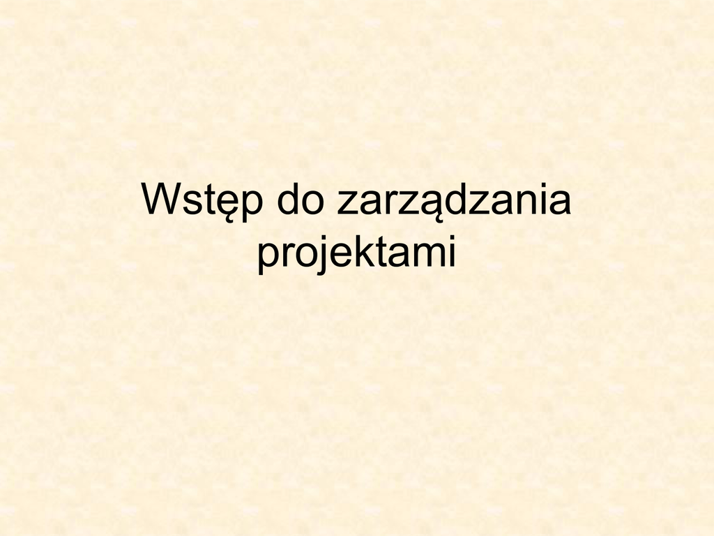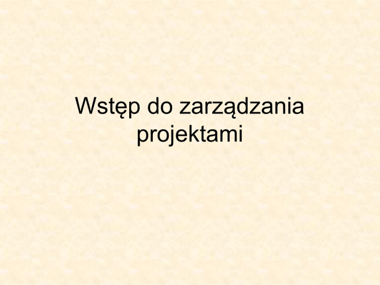 Wstęp do zarządzania projektami Definicja projektu • Projekt to tymczasowe przedsięwzięcie podejmowane w celu wytworzenia unikalnego wyrobu, dostarczenia unikalnej usługi lub uzyskania unikalnego rezultatu. Cechy projektu • • • • • • • • Unikalny charakter Ograniczony czas trwania Zużywa zasoby Określony zakres System powiązanych ze sobą działań Posiada budżet Posiada sponsora Posiada sprecyzowane produkty cząstkowe Intensywność prac Nakładanie się grup procesów w ramach projektu Planowanie Rozpoczęcie Realizacja Kontrola Zamknięcie Start Czas Fazy projektu Rozpoczęcie Planowanie Realizacja Kontrola Zakończenie Rozpoczęcie projektu Rozpoczęcie Planowanie Realizacja Kontrola Zakończenie Rozpoczęcie projektu - definicja • Rozpoczęcie to proces formalnego zatwierdzenia do realizacji oraz wstępnego zdefiniowania zakresu nowego projektu lub kolejnego etapu trwającego już projektu. Przyczyny rozpoczynania projektów • • • • • • Oczekiwania rynku Potrzeby firmy Zamówienie klienta Postęp technologiczny Wymagania prawne Potrzeby społeczne Elementy fazy rozpoczęcia • Identyfikacja interesariuszy i ich potrzeb • Cele i wymagania projektu • Stworzenie wstępnej deklaracji zakresu projektu Charakterystyka celów SMART • • • • • S - Specific – Precyzyjne M – Measurable – Mierzalne A – Agreed to – Zaakceptowane R – Realistic – Realne T – Time constraint – Ograniczone w czasie Definiowanie wymagań • Cele źródłem wymagań projektu • Wymagania stanowią podstawę tworzenia planu zarządzania projektem • Proces definiowania wymagań – Zebranie informacji – Analiza i interpretacja informacji – Przygotowanie dokumentacji – Uzyskanie akceptacji dokumentacji Wymaganie - definicja • Uwarunkowanie lub zdolność, którą powinien posiadać lub spełniać system, wyrób, usługa, rezultat lub element składowy, aby wykazać zgodność z kontraktem, normą, specyfikacją lub innym formalnie narzuconym dokumentem. Weryfikacja wymagań • Prezentacja udokumentowanych wymagań przed kluczowymi interesariuszami • Uwagi interesariuszy • Dokument wymagań projektu • Pozyskanie formalnego zatwierdzenia dokumentu wymagań projektu od sponsora Wstępna deklaracja zakresu projektu • Opis projektu na ogólnym poziomie zawierający: – Wymagania dotyczące produktów cząstkowych projektu – Wymagania dotyczące produktu projektu – Ramy realizacji projektu (co jest w zakresie, a co poza zakresem projektu?) Planowanie projektu Rozpoczęcie Planowanie Realizacja Kontrola Zakończenie Przyczyny planowania • Zapewnienie, że zaplanowane zostały wszystkie działania prowadzące do powstania produktu projektu • Ułożenie działań w logiczny ciąg • Zbudowanie realnego harmonogramu prac • Wzmocnienie zaangażowania zespołu • Zagwarantowanie czasu na dokumentację • Zapewnienie dostępności niezbędnych zasobów Role przy planowaniu • Kierownik projektu – odpowiedzialny za stworzenie planu zarządzania projektem • Zespół projektowy – aktywnie uczestniczy w planowaniu projektu • Sponsor projektu – może być zaangażowany w planowanie, akceptuje plan zarządzania projektem • Interesariusze projektu – zaleca się zaangażowanie w działania związane z planowaniem (klient, użytkownicy, podwykonawcy…. ) Plan zarządzania projektem - zawartość • Zarządzanie zakresem – Opis produktu, deklaracja zakresu, karta projektu – Struktura podziału pracy (WBS) • Zarządzanie czasem – Harmonogram i kamienie milowe • Zarządzanie kosztami – Estymacja kosztów – Budżet • Zarządzanie zasobami – Macierz obowiązków – Zestawienie zasobów • Zarządzanie komunikacją – Zasady raportowania • Zarządzanie ryzykiem – Identyfikacja, plany zapasowe, plany obniżenia • Zarządzanie dostawcami • Zarządzanie jakością Struktura podziału pracy - WBS Zorientowane na produkty cząstkowe zestawienie prac projektowych, które mają doprowadzić do realizacji celów projektu i stworzenia produktu projektu • WBS - Work Breakdowm Structure • Jest podstawą wszystkich innych działań związanych z planowaniem • Prezentuje zakres prac w podziale na mniejsze, łatwiejsze do kontroli pakiety WBS - przykład Malowanie pokoju Wybór koloru Zakup farby Przygoto wanie ściany Malowanie ściany Czym jest WBS? • Wszystkie działania, które będą przeprowadzone w fazie realizacji • Wszystkie działania niezbędne do tego, aby osiągnąć cele projektu • Tylko te działania, które prowadzą do celów projektu • Złożoność WBS zależy od specyfiki projektu • WBS jest dekompozycją zakresu projektu WBS – przykład (2) Wdrożenie systemu ERP Ocena Plan Ocena infrastruktury Analiza Analiza wstępna Projektowanie rozwiązania Tworzenie systemu Uruchomienie Działanie systemu Projektowanie oprogramowania Przygotowanie systemu do uruchomienia Wsparcie systemu Tworzenie i testowanie kodu Akceptacja systemu Testowanie systemu Uruchomienie systemu w środowisku organizacji Zastosowanie WBS • Wspólne tworzenie WBS wzmacnia poczucie integracji zespołu • Pomaga kontrolować zakres projektu • Buduje podział odpowiedzialności • Pomaga kontrolować zmiany • Jest wykorzystany w dalszych pracach związanych z planowaniem (planowanie ryzyka, budżetu… ) Plan zarządzania projektem - zawartość • Zarządzanie zakresem – Opis produktu, deklaracja zakresu, karta projektu – Struktura podziału pracy (WBS) • Zarządzanie czasem – Harmonogram i kamienie milowe • Zarządzanie kosztami – Estymacja kosztów – Budżet • Zarządzanie zasobami – Macierz obowiązków – Zestawienie zasobów • Zarządzanie komunikacją – Zasady raportowania • Zarządzanie ryzykiem – Identyfikacja, plany zapasowe, plany obniżenia • Zarządzanie dostawcami • Zarządzanie jakością Zarządzanie czasem WBS Śledzenie i kontrola Szeregowanie działa