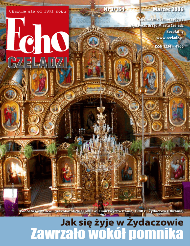 Nr 3/164 Marzec 2006 Miesięcznik Samorządowy Wydawca: Urząd Miasta Czeladź Bezpłatny www.czeladz.pl foto Wiesława Konopelska ISSN 1234 – 4966 Ikonostas w cerkwii grekokatolickiej pw. św. Zmartwychwstania, 1900 r., Żydaczów (Ukraina) Jak się żyje w Żydaczowie Zawrzało wokół pomnika Drodzy Mieszkańcy! Chociaż jeszcze śnieg za oknem i otacza nas zimowa aura, to już za niedługo obchodzić będziemy Święta Wielkanocne. Proszę więc przyjąć najserdeczniejsze życzenia radości, nadziei i optymizmu nadchodzących wraz z nastaniem wiosny. Burmistrz Czeladzi MAREK MROZOWSKI 4 marca 2006 r. reprezentujący gminę Czeladź burmistrz Marek Mrozowski odebrał certyfikat PRZEJRZYSTA POLSKA. Tym samym nasze miasto znalazło się w gronie 403 nagrodzonych samorządów. Województwu śląskiemu przypadło 39 certyfikatów. Otrzymały je m.in. miasta Bytom, Częstochowa, Dąbrowa Górnicza, Sosnowiec, Mysłowice, Gliwice, Ruda Śląska, Rybnik, Zawiercie. Uroczyste wręczenie certyfikatów odbyło się w siedzibie „Gazety Wyborczej” w Warszawie. Zorganizowana została również debata na temat samorządu w Polsce z udziałem Ludwika Dorna – Ministra Spraw Wewnętrznych i Administracji oraz Jana Rokity – Wiceprzewodniczącego Klubu Platformy Obywatelskiej. W liście skierowanym do laureatów Jerzy Regulski – prezes Fundacji Rozwoju Demokracji Lokalnej napisał: „Musimy się wszyscy uczyć demokracji. I program „przejrzysta Polska” właśnie taką szkołę stanowił. Nie był to program łatwy. Wdrożenie ustalo- nych zadań wymagało trudu. Ale Wy je zrealizowaliście. Zbudowaliście mosty łączące Was i Waszych mieszkańców, którzy teraz znacznie lepiej Was rozumieją. Wzmocniliście istotę samorządności i zrobiliście istotny krok na drodze budowy demokracji.” Aby otrzymać certyfikat należało zrealizować następujące zadania: I. Zasadę przejrzystości II. Zasadę braku tolerancji dla korupcji III. Zasadę partycypacji społecznej IV. Zasadę przewidywalności V. Zasadę fachowości VI. Zasadę rozliczalności. Organizatorami akcji prócz „Gazety Wyborczej” byli: Fundacja Agora, PolskoAmerykańska Fundacja Wolności, Fundacja im. Batorego, Fundacja Rozwoju Demokracji Lokalnej i Centrum Edukacji Obywatelskiej. Dodać trzeba, że Czeladź w ostatnich dwóch latach wdrożyła system Zarządzania Jakością ISO 9001 oraz otrzymała puchar Związku Powiatów Polskich za zwycięstwo w rywalizacji o najlepszą e-gminę. (wk) Mamy certyfikat PRZEJRZYSTA POLSKA! W mieście W pier wszą rocznicę śmierci Czesława Słani Targi Pracy Ponad 4 tysiące ofert dla poszukujących pracy sprawdziły się! W dniach 25 i 26 lutego br. odbyło się w czeladzkim Centrum Handlowym M1 II Ogólnopolskie Targi Pracy w Kraju i Zagranicą. Przedsięwzięcie odbyło się przy udziale Urzędu Miasta w Czeladzi. Odbyły się w tym miejscu, aby przybliżyć je jak najszerszemu gronu odbiorców, aby pokazać, że targi to przede wszystkim jednoczesna prezentacja oferty wielu firm i spotkania z ekspertami. Odwiedzającym przedstawiono ponad 4000 atrakcyjnych ofert pracy w kraju i poza granicami. Propozycje były zróżnicowane – od przedstawicieli handlowych, pracowników administracyjno-biurowych, konsultantów telefonicznych, pracowników obsługi klienta, doradców klienta, hostess, promotorów, merchandiserów, kasjerów, sprzedawców, po operatorów transportu wewnętrznego i maszyn przemysłowych. Oferty pracy za granicą skierowano m.in. do operatorów sprzętu ciężkiego, kierowców, pracowników budowlanych, stolarzy, masarzy, spawaczy, elektryków, pracowników ochrony, monterów rusztowań, pakowaczy, malarzy, ślusarzy, operatorów wózków widłowych, opiekunów osób starszych i niepełnosprawnych, farmaceutów, pielęgniarek, dentystów, informatyków, grafików komputerowych, kelnerów i sprzedawców. Wiele osób zainteresowanych pracą mogło znaleźć wśród ofert pracę dla siebie. Głównym założeniem organizowanej imprezy była prezentacja nowych możliwości zatrudnienia oraz bezpiecznego podjęcia pracy za granicą. Targi okazały się unikalną okazją nawiązania kontaktu z pracodawcami oraz uzyskania fachowej porady od zaproszonych ekspertów. Projekt Polskich Targów cieszył się ogromnym zainteresowaniem. Potwierdzały to spore kolejki osób ustawione przed boksami firm oferujących pracę. W przyszłości warto będzie powtarzać imprezy tego typu, gdyż widać duże zainteresowanie nimi wykazywane przez osoby pozostające bez pracy. WOJCIECH MAĆKOWSKI Czeladzkie Rody zapraszają K lub Rodów Czeladzkich serdecznie zaprasza na V edycję wieczorów pt. „Czeladź w kalejdoskopie historii”, która odbędzie się 31 marca 2006 r. (piątek) o godz. 17.00 w SDK „Odeon” (ul. Szpitalna 9). W programie m.in. scenki obyczajowe przedstawiane przez młodzież Miejskiego Zespołu Szkół, wystąpienie burmistrza Marka Mrozowskiego „Czeladź w XXI wieku – najbliższe plany” oraz wystawy: historia miasta w dokumentach, Czeladź w fotografii Jerzego Żymirskiego, drzewa genealogiczne rodzin Liszczyków, Zdeblów, Machniewskich, Pęciaków, Rębalskich, Dusiów i Szydłów przygotowane przez Ryszarda Liszczyka. Wykład o historii i rozwoju miasta wygłosi Danuta Walczak, prezes Klubu, autorka scenariusza i prowadząca wieczor. Patronat honorowy nad V edycją wieczoru Klubów Rodów Czeladzkich objął senator RP Zbigniew Szaleniec. RADA KLUBU RODÓW CZELADZKICH Pamiętając o wybitnym czeladzianinie 24 marca br. o godz. 11.00 przy ulicy Krzywej 2 (Piaski) zostanie odsłonięta tablica poświęcona Czesławowi Słani (1921-2005), wybitnemu rytownikowi znaczków pocztowych, uhonorowanemu tytułem „Nadwornego grawera króla Szwecji” i godnością Honorowego Obywatela Miasta Czeladź, który tu mieszkał w latach 1921-1927. Fundatorem tablicy jest Miasto Czeladź, a powstała według projektu artysty plastyka Jana Powałki. Uroczystość ta zb