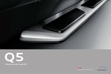 Q5 Akcesoria do Audi Q5 Audi Oryginalne akcesoria Jest coś, co wyróżnia nie tylko Państwa, ale także Audi Q5: indywidualność Mocną stroną Audi Q5 jest jego wszechstronność. Łatwo dostosowuje się do Państwa potrzeb. Jeżeli nie mają jeszcze Państwo sprecyzowanych planów, proponujemy zapoznać się z produktami oferowanymi przez Oryginalne akcesoria Audi. Wasze Audi Q5 szybko dopasuje się do Państwa wyobrażeń. Strona Akcesoria 4 Sport i design 10 Transport 18 Komunikacja 20 Rodzina 22 Komfort i ochrona 30 Oryginalne akcesoria Audi 4 | 5 Sport i design Nie odkrywamy koła na nowo. Chociaż po licznych testach przypuszczalnie moglibyśmy to zrobić W codziennym użytkowaniu obręcze ze stopu metali lekkich narażone są na duże obciążenia i ryzyko uszkodzeń. Aby spełniać wysokie wymagania jakościowe, obręcze poddawane są różnorodnym próbom, w tym z zakresu bezpieczeństwa. Zakrojone na szeroką skalę testy gwarantują odpowiednią wytrzymałość elementów konstrukcyjnych. Wysokiej jakości, wielowarstwowe lakierowanie zapewnia nie tylko wspaniały wygląd, lecz stanowi także skuteczną ochronę przed zarysowaniami. 1 1 Obręcz koła ze stopu metali lekkich, 10-ramienna, polerowana, antracytowa* Polerowane ramiona nadają obręczy elegancki wygląd. Obręcz 8,5 J x 20 dostosowana do opon w rozmiarze 255/45 R 20. 2 Obręcz koła ze stopu metali lekkich, 10-ramienna, kolor srebrny Silber* Wielkość 8,5 J x 20, dostosowana do opon w rozmiarze 255/45 R 20. 3 Nakrętki zabezpieczające zawór Komplet 4 metalowych nakrętek z logo Audi w postaci czterech pierścieni. Chronią zawór przed kurzem, brudem i wilgocią. Dostępne do zaworów gumowych, metalowych i aluminiowych. Pokrowce na koła Zestaw czterech pokrowców do przechowywania kompletu kół, z praktycznymi uchwytami ułatwiającymi transport. Wykonane z wytrzymałego tworzywa sztucznego, z zewnętrzną kieszenią przeznaczoną do przechowywania śrub. 2 * Tylko w połączeniu z listwami nadkoli. 3 6 | 7 Sport i design Kto chce pięknie wyglądać, musi cierpieć 1 Obręcz koła ze stopu metali lekkich, 5-ramienna, dwuczęściowa Zewnętrzna, przykręcana tytanowymi śrubami część obręczy jest odlewana ciśnieniowo. Wielkość 8 J x 19, dostosowana do opon w rozmiarze 235/55 R 19. 2 Koło zimowe z 5-ramienną obręczą ze stopu metali lekkich Z możliwością montażu łańcuchów śniegowych. Obręcz 7 J x 17 z oponą 235/65 R 17, Dunlop SP Winter Sport 3D AO. Klasa efektywności energetycznej: F, klasa przyczepności na mokrej nawierzchni: C, poziom hałasu zewnętrznego: 72 dB. 2 3 Zestaw śrub zabezpieczających Odkręcane tylko przy użyciu specjalnego adaptera, są idealnym zabezpieczeniem przed kradzieżą kół. Łańcuchy śniegowe Zapewniają lepszą przyczepność na śniegu i lodzie. Dostępne w różnych rozmiarach. 3 Obręcze ze stopu metali lekkich Temat: jakość 1 Na przykład w trakcie badania odporności na korozję. Eksperci testujący jakość obręczy są tak samo pomysłowi, jak nasi projektanci. Nieznośny upał, wysoka wilgotność powietrza, intensywne nasłonecznienie – liczba możliwych testów jest niemal nieograniczona. Ale najtrudniejszym sprawdzianem jest badanie korozyjne we mgle solnej z dodatkiem kwasu octowego i chlorku miedziowego (CASS). Obręcze, po symulowanym teście odporności na uderzenia kamieniami, przez kilka dni poddawane są działaniu tego bardzo korozyjnego roztworu. Muszą one znieść bez widocznego uszczerbku wszystkie stawiane im wyzwania. Dlatego obręcze z oferty Oryginalnych akcesoriów Audi po wielu przejechanych kilometrach zachwycają tak samo, jak pierwszego dnia. Dobrze wyglądać na każdej drodze. I również tam, gdzie nie ma żadnej drogi Podkreślcie Państwo wizualny aspekt Audi Q5. Pakiet stylistyczny Offroad, wzmacniając atletyczną sylwetkę Audi Q5, bezpośrednio nawiązuje do jego możliwości jazdy terenowej. Odpowiednie akcenty uczynią Państwa Audi Q5 bardziej energicznym i sportowym – i niemal zbyt pięknym, by posłać go w teren. 8 | 9 Sport i design 1 2 3 4 1 Zderzak przedni Przednia część samochodu ze zderzakiem o zmienionym kształcie z lakierowym na kolor szary Stone Grey metalik spoilerem, osłoną chłodnicy z pionowymi chromowanymi listewkami oraz osłoną podwozia ze stali szlachetnej. 2 Listwy drzwiowe Lakierowane na kolor szary Stone Grey metalik. Ograniczają ryzyko uszkodzenia dolnej części drzwi powstające np. od uderzeń kamieni. 3 Nakładki poszerzające nadkola Lakierowane na kolor szary Stone Grey metalik. Podkreślają charakter samochodu i chronią boczne partie przed otarciami. 4 Zderzak tylny Lakierowana na kolor szary Stone Grey metalik nakładka tylnego zderzaka podkreśla dynamikę tylnej części Audi Q5, a osłona ze stali szlachetnej chroni tylną część podwozia przed uszkodzeniem. 5 Stalowe progi boczne Wykonane ze stali nierdzewnej. Ułatwiają np. załadunek ekwipunku do bagażnika dachowego montowanego na belkach dachowych. Gumowe nakładki ograniczają ryzyko poślizgu. Dopuszczalne obciążenie progu: 200 kg. 5 10 | 11 Transport W Audi Q5 jest wystarczająco dużo miejsca. Ale niektórym może to i tak wydawać się za mało 1560 litrów pojemności to naprawdę sporo. Ale do przewożenia zajmujących dużo miejsca przedmiotów znajdą Państwo w ofercie Oryginalnych akcesoriów Audi praktyczne i estetyczne wyposażenie dodatkowe. Dzięki temu zabiorą Państwo ze sobą wszystko to, co chcą. 1 1 Bagażnik rowerowy do montażu na haku holowniczym Zamykany bagażnik do transportu dwóch rowerów. Maksymalne obciążenie 60 kg. Dodatkowo dostępna jest szyna do transportu trzeciego roweru. Prosty w obsłudze mechanizm ułatwia szybki montaż. W celu otwarcia pokrywy bagażnika wystarczy prostym ruchem położyć ramię mocujące rowery. 12 | 13 Transport 1 Kosz dachowy* Przeznaczony do transportu dodatkowego bagażu na dachu. Wykonany z odpornego na korozję, anodowanego pro