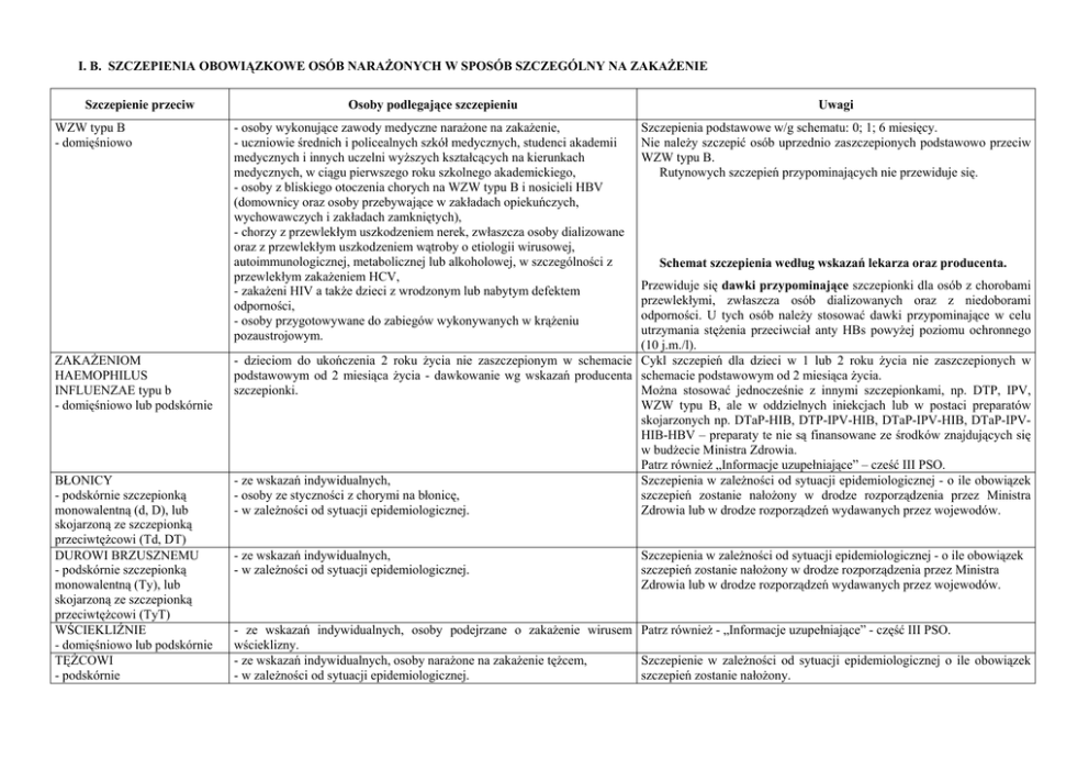 I. B. SZCZEPIENIA OBOWIĄZKOWE OSÓB NARAŻONYCH W