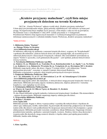 informacji zamieszczonych w sobotnim dodatku Gazety Wyborczej „Kraków przyjazny maluchom”.