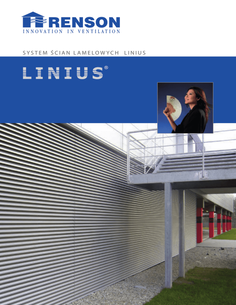 SYSTEM ŚCIAN LAMELOWYCH LINIUS 1 . W P R O WA D Z E N I E Pier wsze lamele znalazły zastosowanie w dz wonnicach, gdzie ich zadaniem było chronić dzwony przed deszczem i wiatrem, a jednocześnie nie stanowić barier y dla rozprzestrzeniania się dźwięku. Dziś lamele mają wielorak ie zastosowanie. Chronią doskonale przed deszczem, hałasem, ptakami i owadami a w szczególnych przypadkach stanowią również osłonę przed nadmiernym przepływem powietrza. W innych przypadkach są tak projektowane aby uzyskać określoną przepustowość powietrza. Pozostałe rozwiązania, które można zastosować , takie jak – drzwi lamelowe, zawiasy, klamki dają możliwość stworzenia jednorodnej ściany. Budynek Renson Ventilation, Waregem (Belgia), arch. J. Crepain W W W. R E N S O N . E U -2- SPIS TREŚCI 2. Przesłanie firmy RENSON 6 podstaw partnerstwa Obiekty referencyjne 3. Cele stawiane ścianom lamelowym Przegląd 4. Typy lameli L.033 L.033V L.050 L.050HF L.066 L.075 L.095 L.065AL L.065GL L.065StS L.150AC L.066P SUNCLIPS® Evo 4 4 5-7 8 9-11 12 14 16 18 20 22 24 26 26 26 28 30 5. Kryteria doboru 32 6. Podkonstrukcja LD.0065 LD.0195 LD.0460 LD.0995 SUNCLIPS® Profile nośne SD.014 - SD.054 - SD.100 35 36 37 38 39 42-43 7. Głębokości ścian lamelowych 43 8. Elementy łączące Łącznik l LZ.4202-4211 Łącznik LZ.4206 Łącznik LZ.4203-4209 44 44 45 45 9. Akcesoria A. Drzwi Zawiasy Drzwi pojedyncze Drzwi podwójne Klamki i zamki Ogranicznik B. Siatki przeciw owadom i ptakom C. Parapet D. Ramki 46 46 47 47 47 48 48 49 50 51 10. Dodatkowe możliwości A. Lamele gięte B. Lamele cięte pod kątem C. Inne rozwiązania D. Lamele blokowe E. Pokrywy dachowe F. Kraty G. Rozwiązania akustyczne H. Rozwiązania dla fasad z lamelami SUNCLIPS® und ICARUS® 52 52 53 54 54 55 55 56 Składowanie i konserwacja Składowanie Wskazówki montażowe Opis 57 57 58 59 11. 56 Zastr zega się prawo do wprowadzania modyfik acji technicznych. -3- 2. PRZESŁANIE FIRMY RENSON 6 podstaw partnerstwa 1. Zadowolenie klientów osiągnięte przez kontakt osobisty, profesjonalizm, doskonałą obsługę i niezawodne produkty – to główny cel naszej firmy 2. Firma Renson jest renomowaną, z założenia wielonarodową firmą, z międzynarodową wiedzą i doświadczeniem, zdobytymi dzięki wysiłkowi swoich lokalnych specjalistów. Są oni obecni we wszystkich rejonach świata, przez co firma Renson może się pochwalić realizacjami w każdym punkcie kuli ziemskiej. 3. Kompleksowa obsługa przy realizacji projektów. Wsparcie i doradztwo na każdym etapie planowania, przygotowania i montażu. 4. Dzięki pełnej pionowej integracji naszych procesów produkcyjnych, możemy sprostać każdym wymaganiom. Inwestycje w działy ekstruzji i epoksydowania oraz w pełni zautomatyzowana malarnia proszkowa gwarantują naszą wydajność i dokładność. 5. Nasz dział badawczo-rozwojowy w sposób ciągły przekłada oczekiwania i potrzeby klientów na doskonałe i innowacyjne produkty. 6. Firma RENSON będac specjalistą w zakresie naturalnej wentylacji i ochrony przed słońcem przyjęła sobie za cel wprowadzenie w życie koncepcji <Healthy Building Concept – zdrowo żyć i pracować>. W W W. R E N S O N . E U -4- Projekt: Parc des Expositions – Paris Porte de Versailles (Francja), Arch. : Valode & Pistre O B I E K T Y R E F E R E N C YJ N E BELGIA Regierungsviertel - Er furt High Tech Centre Philips - Eindhoven Madou Toren - Brüssel Fraunhofer Institut - Magdenburg Haagse Poort - Den Haag Szkoła wyższa Gruppe T - Löwen Peek & Cloppenburg - Köln Prinsenhof - Den Haag Lotnisko - Zaventem Parking Am Geucht - Rostock Showbizzcity - Aalsmeer Smithkline Beecham Niederlassung - Centrum Technologiczne - Heidelberg Brüssel BAM Krasnapolsky - Amsterdam Alexandrium - Amsterdam Omega Pharma - Nazareth IZRAEL Alcatel Buildings - Antwerpen Telephone CY - Naharia FRANCJA WĘGRY Maritiem museum - Rotterdam Futuroscope - Poitiers NBC-Gebäude - Budapest KPN Callcenter - Amersfoort Euralille - Lille Vodafone – Budapest Sony Music - Delft Paris-Expo - Paris ING Vörösmarty - Budapest Scheepvaart en transportcollege Rotterdam UVE - Rouen TURC JA Gemey Maybelline - Orléans Pamuk Bank - Istanbul (Arch : Alain Bailly - Lionel Colson, Paris) Siege SNCF - Mouchotte Paris WŁOCHY Universität - Bologna WIELKA BRYTANIA More - London Chu - Perpignan POLSKA Ifremer - Sète Riviera - Warszawa Fetter Lane - London Thomson - Rousset Millenium Plaza - Warszawa Concert Hall - Perth Metro - Warszawa Royal Opera House - London NIEMCY Hotel Mercure - Poznań Carlton Gardens - London Musiksender MT V - Berlin Galeria Kazimierz - Kraków Odeon - Glasgow AIRBUS Hallen - Hamburg Outlet Factor y - Poznań Breahead Park - Glasgow VW Design Zentrale - Potsdam HOLANDIA SZWAJCARIA Lotnisko - Frankfurt Bouwhuis - Zoetermeer World Trade Center - Lugano Centrum Targowe - Frankfurt TGV station - Barendrecht Dom Aquaree - Berlin Mosae Forum - Maastricht Bank Raiba - Seebachgrund Audi - Neckarsulm -5- Ref. Nefryt building – L.066 Ref. Frente De Mar (PT ) L.075S Ref. Fraunhoferinstitut VDTC, Magdenburg (DE), L.050 e L.033 Ref.Galeria Kazimierz - L.150 AC Ref. Projekt: Les Iris, Tuluza (Francja), Inwestor: Biuro projektów/architekt: Tassera (Tuluza), Wykonawca: SMAC ACIEROID Ref. Omega Pharma, Nazareth (BE) L.065G -6- W W W. R E N S O N . E U Ref.: VM Skoda garage, Gent (Belgia), L.033 Ref. ING Vörösmarty - HU - Budapest Ref. Vodafone - Budapeszt ( Węgry) Ref. Seabreas, Dundee ( Wielka Brytania), L.095 Ref. Hotel Raddisson, Berlin (Niemcy), L.050.01 Ref. Concordia, Waregem (Belgia), L.066 -7- 3 . C E L E S TAW I A N E Ś C I A N O M L A M E L O W Y M 1 2 3 4 5 6 1. O C H R O N A 4. O SŁONA System ścian lamelow ych deszczem, wiatrem i owadami. chroni pr zed System ścian lamelowych jest roz wiązaniem stosowanym dla osłonięcia nieestetycznych ur ządzeń pr zed wzrok iem uż ytkowników budynku. 2. W IET R ZEN IE System ścian lamelowych zapewnia estetyc