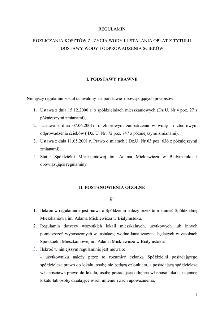 1 regulamin rozliczania kosztów zużycia wody i ustalania opłat z