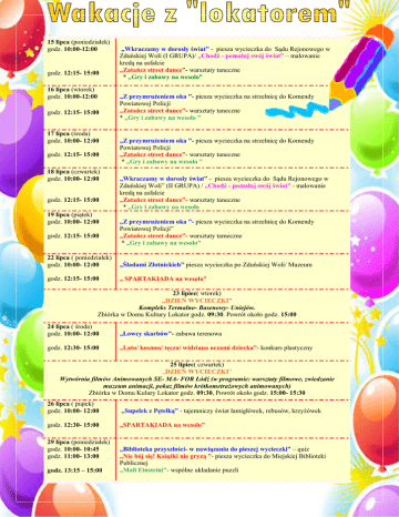Plan Wakacji - Dom Kultury Lokator