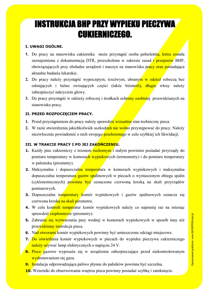 Instrukcja BHP przy wypieku pieczywa cukierniczego.