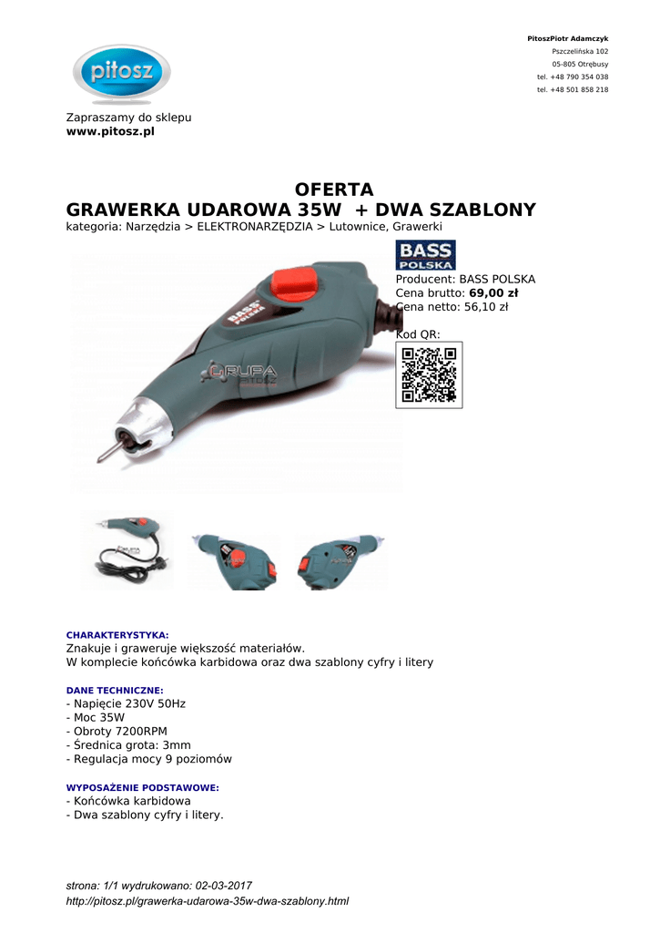 oferta grawerka udarowa 35w + dwa szablony