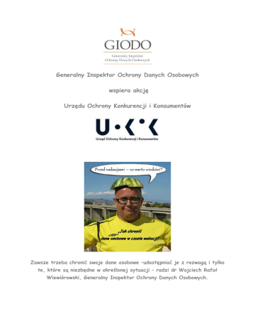 Generalny Inspektor Ochrony Danych Osobowych wspiera akcję Urzędu Ochrony Konkurencji i Konsumentów Zawsze trzeba chronić swoje dane osobowe –udostępniać je z rozwagą i tylko te, które są niezbędne w określonej sytuacji – radzi dr Wojciech Rafał Wiewiórowski, Generalny Inspektor Ochrony Danych Osobowych. Jak chronić dane osobowe w czasie wakacji? SZEF NIE ZAWSZE MUSI WIEDZIEĆ, GDZIE SPĘDZAMY URLOP Czy przed sezonem urlopowym szef może żądać od wszystkich pracowników, by podali swoje dane teleadresowe na wypadek, gdyby uznał, że niezbędny jest ich powrót do pracy? Nie Możliwość odwołania pracowników z urlopu dotyczy tylko części osób, wobec tego niecelowe jest pozyskiwanie od każdego z nich danych teleadresowych. Wymóg przekazania takich informacji wydaje się uzasadnione jedynie co do pracowników pełniących strategiczne funkcje, i co do których prawdopodobne jest, że może zaistnieć konieczność ich odwołania z urlopu. Lepszym rozwiązaniem jest wyposażenie takich pracowników w telefony służbowe. Przepisy Kodeksu pracy nie określają, w jaki sposób może nastąpić odwołanie pracownika z urlopu, stanowią jedynie, że pracodawca może odwołać pracownika z urlopu tylko wówczas, gdy jego obecności w zakładzie wymagają okoliczności nieprzewidziane w chwili rozpoczynania urlopu. Zatem, jeśli pracodawca ma zamiar zbierać od pracowników dane teleadresowe umożliwiające odwołanie ich z urlopu, musi wziąć pod uwagę ustawę o ochronie danych osobowych. Zgodnie z jej przepisami pracodawca może wykorzystywać tylko te dane, które są konieczne dla realizacji celu, w jakim zostały zebrane (tzw. zasada adekwatności). Pozyskiwanie od wszystkich pracowników informacji o miejscu pobytu w czasie urlopu wypoczynkowego i numerze telefonu kontaktowego na wypadek, gdyby konieczne było ich odwołanie z urlopu narusza tę zasadę. BIURO PODRÓŻY MOŻE ZBIERAĆ TYLKO TE DANE, KTÓRE SĄ NIEZBĘDNE DO ORGANIZACJI WCZASÓW Korzystając z usług biur podróży, często proszeni jesteśmy o wypełnienie kwestionariuszy i podanie bardzo wielu dotyczących nas danych. Zanim je udostępnimy, warto zastanowić się, czy organizator wyjazdu ma prawo je zbierać i czy ich podanie jest niezbędne, by skorzystać z usługi. O ile zawieramy z biurem umowę to – w celu jej realizacji - ma ono prawo pozyskać nasze dane osobowe. Może, a nawet musi, nimi dysponować w celu organizacji tego wyjazdu (np. rezerwacji biletów na podróż, miejsca w hotelu czy kontaktowania się z nami). Zatem, gdy posługiwanie się dotyczącymi nas danymi jest konieczne do realizacji umowy, której jesteśmy stroną lub gdy jest to niezbędne do podjęcia działań przed zawarciem umowy, biuro ma prawo przetwarzać nasze dane WAŻNE - udostępniamy tylko informacje konieczne do skorzystania z usługi. Jeśli uznamy, że prosi się nas o zbyt wiele – mamy prawo zapytać jaka jest tego podstawa. W przypadku zamiaru wykorzystywania przez biuro danych w innym, niż realizacja umowy, celu - potrzebna jest nasza zgoda. Biuro podróży powinno poinformować nas o celu i zakresie zbierania danych, adresie swojej siedziby i pełnej nazwie, o prawie dostępu do tych danych i ich poprawiania. Powinno także wskazać, komu dane te zostaną przekazane, o ile ma taki zamiar, o ile się na to zgodzimy PO NASZYM POWROCIE BIURO TURYSTYCZNE MOŻE PRZESŁAĆ DO NAS SWOJE OFERTY ale … Te dane osobowe, które biuro turystyczne zebrało na potrzeby organizacji naszego wyjazdu i wypoczynku, nie powinny być wykorzystywane do innych celów, niż wskazane przy zawieraniu umowy, jak chociażby promowanie usług i produktów innych biur podróży (chyba, że wcześniej uzyska na to naszą zgodę). Aczkolwiek biuro turystyczne ma prawo bez naszej zgody wykorzystywać dane osobowe (zgromadzone na potrzeby organizacji wyjazdu), ale tylko w celu promowania własnych produktów i usług. Może zatem przydarzyć się sytuacja, gdy otrzymamy z biura podróży, z którego usług wcześniej korzystaliśmy imiennie zaadresowaną ulotkę informującą nas o kolejnym organizowanym przez to biuro wyjeździe. Gdy jednak nie życzymy sobie takiej korespondencji, możemy poprosić o zaprzestanie jej przysyłania. Od tej chwili biuro podróży nie ma prawa wykorzystywać naszych danych nawet w celach marketingu własnych usług. JAKIE DANE TRZEBA PODAĆ W OŚROKU WCZASOWYM, NA CAMPINGU, W HOTELU…? Gdy przyjeżdżamy do ośrodka wczasowego czy hotelu proszeni jesteśmy o podanie naszych danych. Czy musimy je udostępnić, a jeśli tak, to jakie? Każda osoba, która przybywa np. do domu wczasowego, pensjonatu, hotelu, korzysta z pokoju gościnnego, schroniska, campingu czy pola biwakowego, jest obowiązana zameldować się na pobyt czasowy przed upływem 24 godzin od chwili przybycia. Zameldowania dokonuje się u kierownika zakładu lub upoważnionej przez niego osoby zaś przez zameldowanie rozumie się przedstawienie dowodu osobistego, a w uzasadnionych przypadkach – innego dokumentu pozwalającego na ustalenie tożsamości Dane, które mogą być pozyskiwane w celu realizacji obowiązku meldunkowego to: imię i nazwisko, imiona rodziców, data i miejsce urodzenia, adres miejsca pobytu stałego, data przybycia i zamierzony czas trwania pobytu, numer i seria dokumentu stwierdzającego tożsamość oraz oznaczenie organu, który go wydał. A zatem każda osoba przy meldowaniu się w hotelu ma obowiązek podać takie informacje. RECEPCJONIŚCIE NIE WOLNO ZATRZYMAĆ NASZEGO DOKUMENTU TOŻSAMOŚCI Często zdarza się, że recepcjonista proponuje nam byśmy poszli się rozpakować i zostawili dokumenty, bo możemy odebrać je później, w dogodnym dla nas momencie. Takie praktyki są jednak zakazane. Przepisy prawa wyraźnie wskazują, że przy dopełnianiu obowiązku meldunkowego należy jedynie przedstawić dowód osobisty lub - w uzasadnionych przypadkach - inny dokument pozwalający na ustalenie tożsamo