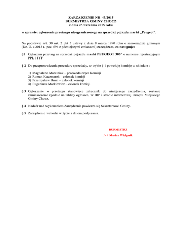 ZARZĄDZENIE NR 43/2015 BURMISTRZA GMINY CHOCZ z dnia