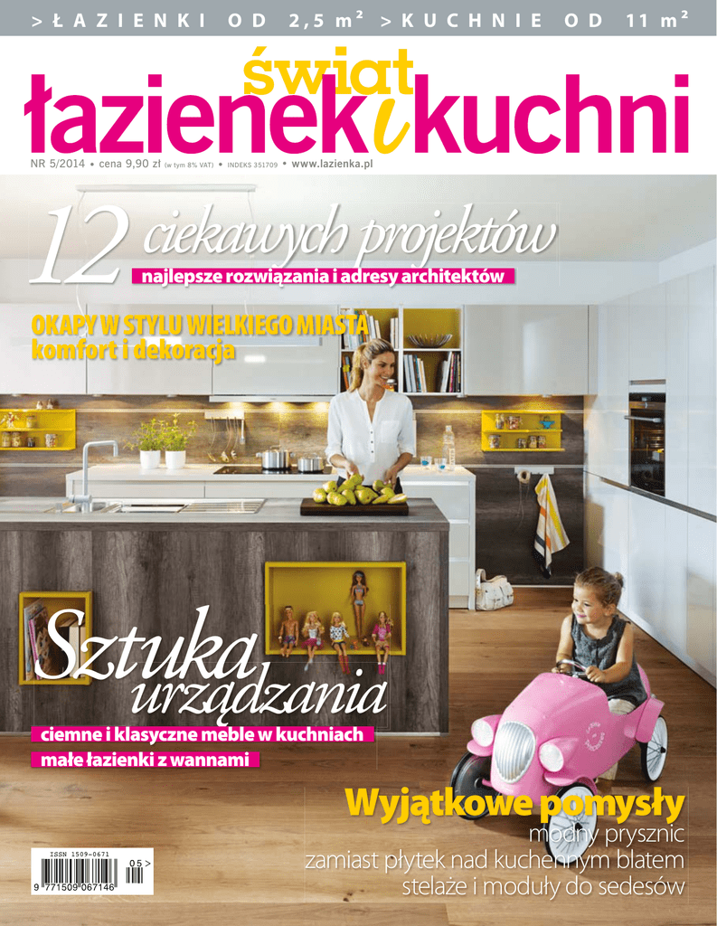 > Ł A Z I E N K I O D NR 5/2014 •FHQD]ï(w tym 8% VAT) • INDEKS 351709 12 2,5 m² > K U C H N I E O D 11 m ² • www.lazienka.pl ciekawych projektów najlepsze rozwiązania i adresy architektów OKAPY W STYLU WIELKIEGO MIASTA komfort i dekoracja Sztuka urządzania ciemne i klasyczne meble w kuchniach małe łazienki z wannami Wyjątkowe pomysły modny prysznic zamiast płytek nad kuchennym blatem stelaże i moduły do sedesów projekt ciekawe rozwiązania Ciemne kolory Wytworny palisander MIESZKAŃCY TEGO DOMU GUSTUJĄ W CIEMNYCH BARWACH. NAWET SPRZĘTY AGD WYBRANO CZARNE – W ULUBIONYM KOLORZE PANA DOMU. WYTWORNY PALISANDER NA FRONTACH MEBLI NAJBARDZIEJ PODKREŚLA ELEGANCKI CHARAKTER WNĘTRZA. Strefa zmywania została umieszczona pod oknem, w rzędzie szafek dolnych, zwieńczonych czarnym blatem z konglomeratu. Fronty, fornirowane palisandrem, nadają zabudowie wytworny charakter. Urządzone z przewagą ciemnych barw wnętrze nie jest ciemne ani smutne, dzięki kontrastowym, białym elementom, jak barek śniadaniowy oraz dobrane do niego hokery, czy takim drobiazgom jak cokół oraz lampy. Umieszczone w wysokiej zabudowie sprzęty AGD w kolorze czarnym podkreślają elegancki styl całej kuchni. Obramowanie, wykończone fornirem palisandru, kryje dodatkowe szafki i półki. PROJEKT MIAŁ BYĆ oparty na ciemnej gamie kolorystycznej. Inwestorzy wybrali płytki podłogowe w kolorze grafitowym, a arch. Marta Kilan stworzyła aranżację, która zgodnie z życzeniem inwestorów uwzględnia ulubioną kolorystykę, a przy tym zapewnia kuchni elegancki, reprezentacyjny charakter. Co więcej, w sposób subtelny i gustowny rozświetliła wnętrze bielą – ciekawie „przemyconą” w różne miejsca zabudowy kuchennej. Aby zapewnić kuchni ciepły, domowy klimat, a jednoczenie zachować wytworny charakter, wybrano fornir palisandru – ciemnego, pięknie usłojonego, egzotycznego drewna. Z tego materiału zostały wykonane fronty szafek dolnych, a także obramowania wyższej zabudowy na przeciwległych ścianach kuchni. w w w.la zienk a .pl ■ 5/2014 29 O ile zabudowa dolna, rozmieszczona wzdłuż jednej ściany, ze strefą zmywania tuż pod oknem, zachowuje standardowy charakter, o tyle wyższa zabudowa jest już daleka od standardowej. Nietypowo i nad wyraz efektownie rozwiązano kwestię szaf po lewej stronie. Zamiast typowej wysokiej zabudowy projektantka zdecydowała się na szafki „medium”: aby dodać wnętrzu lekkości i odejść od konwencji typowego mebla. Pełniąca funkcję kredensu szafa (przeznaczona jest m.in. do przechowywania zastawy stołowej) została umieszczona w ściennej wnęce, a masywne obramowanie, wykończone fornirem palisandru, nadaje jej rangę dekoracji wnętrza. Białe – dla kontrastu – i połyskujące lakierowane fronty świetnie odbijają światło, rozjaśniając wnętrze. Taką funkcję pełnią również pojawiające się w innych miejscach białe 30 5 /2014 ■ w w w.lazienk a. p l elementy. Z lakierowanego MDF-u wykonano cokół oraz widoczny tuż pod blatem fragment korpusów szafek dolnych. Lampy wiszące nad wyspą i stołem w jadalni także są czarno-białe. Kuchnia stanowi część otwartej przestrzeni dziennej podzielonej na strefy. Umownie oddziela ją od jadalni barek śniadaniowy. Jego podwyższony blat skutecznie przesłania też strefę gotowania. Z kolei strefę jadalni dzielącą przestrzeń z salonem wyznacza materiał podłogowy. Od granicy z salonem grafitowe płytki gresowe ustępują miejsca laminowanym panelom w kolorze merbau, który doskonale zgrywa się z kolorem krzeseł i stołu w jadalni. ■ TEKST: ANNA USAKIEWICZ ZDJĘCIA: BARTOSZ JAROSZ ■ STYLIZACJA: EWA KOZIOŁ Barek oddziela kuchnię od jadalni i zasłania strefę gotowania. Ciekawe rozwiązanie: ściana nad blatem oraz tylna ściana barku są wykończone tą samą szklaną mozaiką. Dzięki temu widoczny z salonu na pierwszym planie jest właśnie ten efektowny materiał. Na ścianie po lewej znajdują się – umieszczone we wnęce – szafki pełniące rolę kredensu. Nietypowy charakter mebla podkreśla obramowanie, a błękitne tło ściany dodatkowo go eksponuje. Otwartą przestrzeń dzienną jadalnia dzieli z salonem. Aranżację zdominowała – zgodnie z życzeniem inwestorów – gama ciemnych kolorów. Ociepla ją drewno, a szyku dodaje tapeta z wzorem w stylu glamour. WYPOSAŻENIE I MATERIAŁY płyta grzejna: Siemens okap: Faber piekarnik: Siemens ekspres do kawy: Siemens lodówka: Siemens zlewozmywak: Teka bateria: Kludi meble: zabudowa kuchenna – na zamówienie; stół i krzesła – Bizzarto blaty: konglomerat ściany: mozaika szklana Exclusive Design podłoga: płytki Ariana „Galassia Nero”, panele laminowane Kronopol oświetlenie: lampy nad wyspą i stołem Azzardo INFORMACJE O PROJEKCIE autorka projektu: arch. Marta Kilan; M-3 Projekt; Mera Design powierzchnia: ok. 12 m2 (bez jadalni) więcej projektów: w w w.la zienk a .pl ■ 5/2014 31