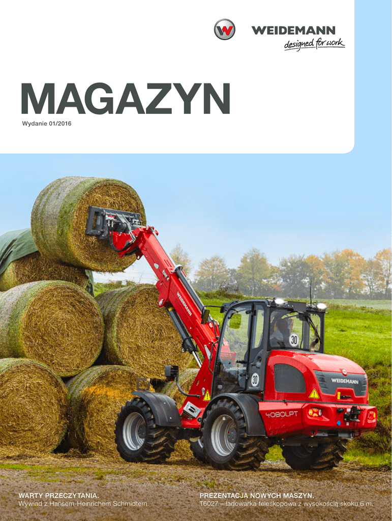 MAGAZYN Wydanie 01/2016 WARTY PRZECZYTANIA. Wywiad z Hansem-Heinrichem Schmidtem. PREZENTACJA NOWYCH MASZYN. T6027 – ładowarka teleskopowa z wysokością skoku 6 m. 02 MAGAZYN WEIDEMANN OKŁADKA MAGAZYN WEIDEMANN ARTYKUŁ WSTĘPNY Nowy rozdział w życiu dla Hansa-Heinricha Schmidta – firma Weidemann mówi: „Wielkie dzięki za wszystko i serwus!” Szanowni Państwo! Mój wieloletni kolega z zarządu Hans-Heinrich Schmidt przechodzi na zasłużoną emeryturę. Ponad 10 lat kierowaliśmy wspólnie losami firmy Weidemann: on odpowiadał za dział zakupów, techniki, rozwoju produktów i produkcji, a ja za sprawy handlowe, jak np. sprzedaż, marketing, kontrola, dział kadr i IT. Spędziliśmy wspólnie czas wielu ekscytujących wyzwań i zmian. Przedsiębiorstwo objęło w tym czasie szczęśliwie dobry kurs. Pracowaliśmy razem ramię w ramię i wiele wspólnie przeżyliśmy. Wiele przedyskutowaliśmy, ponieważ niektóre decyzje nie były wcale takie proste i, co ważne, sporo się razem pośmialiśmy. Bernd Apfelbeck, dyrektor handlowy Weidemann GmbH Ładowarki kołowe i kołowe ładowarki teleskopowe z silnikami nowej technologii są teraz dostępne także jako modele LP. Wraz z nowymi modelami o nazwie Low Position (LP) firma Weidemann przedstawiła na targach Agritechnica 2015 dwie nowe ładowarki kołowe, które oferowane są alternatywnie z uchwytem wahliwym (3080LP i 4080LP) lub jako ładowarki teleskopowe (3080LPT i 4080LPT). Nowe ładowarki zastępują cieszące się powodzeniem modele 3070 CXLP i 4070 CXLP i zostały zaprojektowane na potrzeby średnich oraz większych gospodarstw rolnych oraz zajmujących się hodowlą koni. Istotnym powodem wprowadzenia nowych modeli są wytyczne europejskiej normy dotyczącej emisji spalin na poziomie IIIB, które narzucają drastyczne ograniczenia wartości emisji spalin także dla ładowarek kołowych. Silniki nowych maszyn zostały dostosowane pod tym względem. Firma Weidemann od kliku lat oferuje cieszące się powodzeniem modele Low Position. Niewielki rozmiar maszyny możliwy jest dzięki głębokiemu osadzeniu pozycji fotela operatora. Dzięki temu niskie wysokości przejazdu nie stanowią problemu, nawet z bezpiecznym dachem operatora zamontowanym na stałe lub z kabiną. Z powodu niniejszej konstrukcji LP nie można jednak przechylić stanowiska operatora ani kabiny. Różne otwory kontrolne umożliwiają łatwą konserwację modeli LP. Konstrukcję LP można więc zrealizować po niższych kosztach, dzięki czemu maszyny te jako model podstawowy można oferować na rynku w korzystnych cenach. Hans-Heinrich Schmidt przepracował dla firmy Weidemann 42 lata. Słusznie można powiedzieć, że stworzył on „podwaliny firmy Weidemann”. Kiedy w 1974 roku rozpoczął on pracę w ówczesnej fabryce maszyn Weidemann w dziale konstrukcji przekładni i napraw, nie wiedział jeszcze, że pewnego dnia zostanie dyrektorem technicznym przedsiębiorstwa przemysłowego, zatrudniającego 450 pracowników – wspaniały rozwój i długi czas, który potrafił on aktywnie spożytkować. W niniejszym wydaniu pragniemy przyjrzeć się tej wspaniałej karierze i dlatego przeprowadziliśmy z Hansem-Heinrichem Schmidem osobistą rozmowę. Więcej o jego czasach w firmie Weidemann i o tym, co mu szczególnie leży na sercu przeczytacie Państwo na stronie 10. Ponadto niniejsze wydanie magazynu zawiera wiele interesujących relacji i nowości firmy Weidemann. Nowością w naszym asortymencie jest ładowarka teleskopowa T6027, która dzięki wysokości skoku 6 m i obciążeniu użytkowemu 2,7 t została zaprojektowana z myślą o zastosowaniu w dużych przedsiębiorstwach. Pomyśleliśmy również o naszych młodych fanach: w połowie numeru znajdą oni ilustrowany plakat „Wilma i Willy Weidemann”. Udanej zabawy podczas lektury niniejszego wydania! 03 04 MAGAZYN WEIDEMANN MAGAZYN WEIDEMANN Spis treści WIADOMOŚCI PANORAMA 06 Model T4512 pomaga w Niemczech w ochronie zabytków. 20 Agritechnica 2015 – znowu pełen sukces! 06Tysięczna maszyna Weidemann dostarczona do krajów bałtyckich. 07 Firma Weidemann honoruje 24-letniego współpracownika w Korbach. 07 Firma Weidemann wspiera zarządzanie podczas targów w Erfurcie. 08 Nowy przydział w obszarze sprzedażowym Zachód. 08 LVD Krone Nord nowym partnerem sprzedażowym firmy Weidemann. 09 Osobowości. KOMPETENCJE 22 Targi w sezonie zimowym 2015/16. 24Weidemann w Irlandii – pomyślnie od 2009 roku. 26Weidemann na hali pokazów jeździeckich we Frankfurcie. 28Sprzedawca Weidemann HFT – nowiutka lokalizacja w zakresie inżynierii rolniczej. 30Nowa maszyna Weidemann w gospodarstwie Holling – uczniowie podjęli decyzję. 10-13 14-15 324 pytania do ... działu kadr firmy Weidemann na temat współpracy z Network waldeck | frankenberg. 10 Jesteśmy przekonani, że to naprawdę dobry – wywiad z Hansem-Heinrichem Schmidtem. 14 T6027 – nowa kompaktowa ładowarka teleskopowa marki Weidemann. DZIECI 16 Przygody Wilmy i Willy’ego Weidemannów. 16 PRZEGLĄD 34 Chętnie wysłuchamy Państwa historii! 34 Targi i daty. 35Prenumerata magazynu. Nowy artykuł dla dużych fanów. 18Plakat „Wilma und Willy Weidemann” do wyjęcia. Redakcja: Christina Heine, Sven Rahn, Stefanie Huth, Luca Leni Kind Stopka redakcyjna Wydawca: Weidemann GmbH Mühlhäuser Weg 45-49, 34519 Diemelsee - Flechtdorf Tel. +49 (0) 5633 609 0, Fax +49 (0) 5633 609 666 [email protected], [email protected], www.weidemann.de Weidemann jest spółką zależną Wacker Neuson SE, Monachium. 26-27 30-31 05 06 MAGAZYN WEIDEMANN WIADOMOŚCI Wiadomości. 07 Firma Weidemann honoruje 24-letniego współpracownika w Korbach. Model T4512 pomaga w Niemczech w ochronie zabytków. Denkmalpflege Mühlhausen zatrudniająca około 70 współpracowników to firma rodzinna jeżdżąca po całych Niemczech. Od 2013 roku zespół składający się z restauratorów, kamieniarzy, murarzy i stolarzy jest wspierany podczas restauracji i ochrony zabytkó