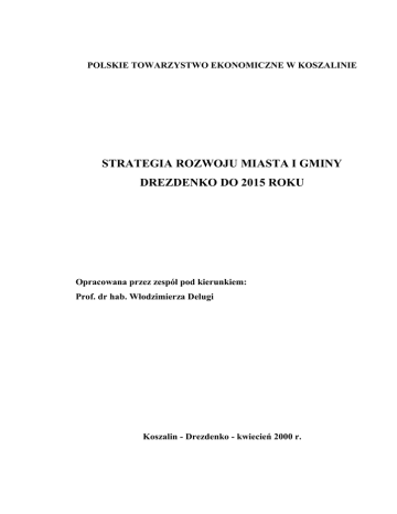 POLSKIE TOWARZYSTWO EKONOMICZNE W KOSZALINIE STRATEGIA ROZWOJU MIASTA I GMINY DREZDENKO DO 2015 ROKU Opracowana przez zespół pod kierunkiem: Prof. dr hab. Włodzimierza Delugi Koszalin - Drezdenko - kwiecień 2000 r. SKŁAD RADY MIEJSKIEJ Przewodniczący Rady Miejskiej Zenon Tymm Zastępcy Przewodniczącego Rady Miejskiej Mgr inż. Adam Kołwzan Bolesław Witkowski Przewodnicząca Komisji Oświaty, Zdrowia, Kultury, Sportu i Opieki Społecznej Mgr Danuta Białas Przewodniczący Komisji Planu i Budżetu Eugeniusz Sottek Przewodniczący Komisji Porządku Publicznego, Ochrony Środowiska, Rolnictwa i Ochrony Przeciwpożarowej Mgr Włodzimierz Sapór Przewodniczący Komisji Rewizyjnej Mgr Andrzej Kozubaj Członkowie Zarządu Miasta i Gminy Mgr Teresa Szydełko Halina Gruszczyńska Mgr Artur Frąszczak Mgr Zdzisław Roślicki Henryk Belter Stanisław Gumny Marian Perzanowski Mgr inż. Edward Buśko Mgr Edward Urban Mgr inż. Wojciech Wilento Tadeusz Słaby Henryk Szczesiak Mgr Wojciech Wojciuszkiewicz Jerzy Skrzypczyński Mgr Tadeusz Grabski Dr Roman Cholewiński Mgr Jan Kuchowicz 2 ZARZĄD MIASTA I GMINY DREZDENKO Roman Cholewiński Jerzy Skrzypczyński Tadeusz Słaby Henryk Szczesiak Wojciech Wojciuszkiewicz Tadeusz Grabski Jan Kuchowicz Burmistrz Miasta i Gminy Roman Cholewiński Zastępca Burmistrz Miasta i Gminy Jan Kuchowicz SOŁECTWA I SOŁTYSI W GMINIE DREZDENKO Górzyska Anna Piętka Modropole Bolesław Świętochowski Klesno Antoni Ludwiczak Zagórze Zdzisław Paruszkiewicz Lubiewo Karol Podgórny Kosin Andrzej Zych Drawiny Andrzej Stocki Przeborowo Kazimierz Jaruch Stare Bielice Marian Piechowski Karwin Teresa Świątek Marzenin Gabriela Rybiałek Niegosław Jerzy Czeszyński Lipno Józef Kondeusz Lubiatów Paweł Kalata Grotów Henryk Bajcar 3 Rąpin Kazimierz Kościelniak Osów Teresa Tokarska Trzebicz Nowy Aleksander Kubiś Bagniewo Henryk Faberski Gościm Władysław Szydełko Trzebicz Bogdan Kryger Zielątkowo Tadeusz Jankowski Goszczanowiec Franciszek Grabowicz Goszczanówek Tadeusz Łochunko Goszczanowo Aleksandra Wojtkowiak Kijów Henryk Włoch 4 Załącznik do Uchwały nr XXIII/170/2000 Rady Miejskiej Drezdenko Z dnia 22 sierpnia 2000 r. Zespół Polskiego Towarzystwa Ekonomicznego w Koszalinie STRATEGIA ROZWOJU MIASTA I GMINY DREZDENKO DO 2015 ROKU Wykonana na zlecenie Zarządu Miasta i Gminy Drezdenko przy aktywnej współpracy Członków Rady Miejskiej, Zarządu Miasta i Gminy, Rad Sołeckich i Sołtysów oraz Mieszkańców Gminy Opracowana przez zespół pod kierunkiem: Prof. dr hab. Włodzimierza Delugi Koszalin – Drezdenko - kwiecień 2000 r 5 Treść: Władze samorządowe gminy Drezdenko 2 Wstęp 7 1. Prognozy rozwojowe otoczenia dalszego i bliższego gminy Drezdenko 9 1.1. Tendencje rozwojowe branż państw Unii Europejskiej 9 1.2. Prognozy polityczno - gospodarcze przynależności Polski do Unii Europejskiej 14 1.3. Prognozy długookresowe rozwoju gospodarczego Polski 17 1.4. Potencjał i tendencje rozwojowe województwa lubuskiego 23 1.5. Powiaty województwa lubuskiego i krótka charakterystyka powiatu 30 1.6. Analiza strategiczna (SWOT) szans i zagrożeń rozwoju gminy Drezdenko 32 2. Analiza perspektywna gminy Drezdenko 34 2.1. Położenie geograficzne i potencjał naturalny gminy Drezdenko 34 2.2. Ludność 37 2.3. Analiza działalności gospodarczej 39 2.4. Miasto i gmina Drezdenko w ocenie mieszkańców 67 2.5. Analiza budżetów i inwestycji w gminie 76 2.6. Mocne i słabe strony (analiza strategiczna SWOT) 92 3. Podstawowe założenia strategii rozwoju miasta i gminy Drezdenko 95 3.1. Wizja rozwoju do 2015 roku 95 3.2. Misja władz samorządowych 100 3.3. Cele strategiczne rozwoju 101 3.4. Uszczegółowienie celów strategicznych 104 4. Strategiczny Plan rozwoju gminy Drezdenko do 2015 roku 118 4.1. Strategie realizacyjne planu rozwoju 118 4.2. Zadania wynikające z celów strategicznych 122 4.3. Synteza zadań (harmonogram realizacji) 130 4.4. Źródła finansowania zadań 138 Zakończenie 142 6 WSTĘP Rozwój lokalnej samorządności w polskiej transformacji ustrojowo – gospodarczej napotyka na wiele barier i progów. Jedną z barier są trudności w dostosowaniu się ludności wsi i małych miasteczek do życia w burzliwym otoczeniu i gwałtownych zmian w nim zachodzących. Zmiany te trudne są do identyfikacji przez ludzi oraz mało zrozumiałe. Najbardziej dotknęły one ludność osiedli PGR-owskich, które praktycznie nie są jeszcze osadami miejskimi. Ten sam problem zauważyć można w małych miastach, w których upadły państwowe zakłady przemysłowe przemysłu terenowego a nowo powstałe, zatrudniają zbyt mało pracowników, wywołując duże bo ponad 20% bezrobocie. Z problemem tym gmina Drezdenko musi się uporać w okresie przedakcesyjnym Polski do grona krajów Unii Europejskiej, czyli w latach 2000 – 2006. Najprawdopodobniej okres akcesyjny rozpocznie się po roku 2006. Opracowana „Strategia Rozwoju Gminy Drezdenko do 2015 roku” zawiera skwantyfikowaną przyszłość w postaci prognoz, wizji rozwojowych oraz celów, a także zadań i sposobów ich osiągnięcia, które mają służyć mieszkańcom gminy w rozwoju społeczno – gospodarczym, samorządności lokalnej oraz własnego podnoszenia stopy życiowej i bytu. Przedstawiona w strategii wizja rozwoju oraz zarys planu strategicznego umożliwiają mieszkańcom gminy osiągnięcie celu głównego „Gmina Drezdenko rejonem turystyczno – rolniczo - przemysłowym europejskiego wymiaru”. Drogę do osiągnięcia tego celu przedstawiono w czterech rozdziałach. W rozdziale I zobrazowano długookresowe prognozy społeczno – gospodarcze i trendy rozwojowe krajów UE, Polski, województwa oraz powiatu strzelecko-drezdeneckiego. Prognozy te i trendy posłużyły w analizie strategicznej do skwantyfikowania szans i zagrożeń w otoczeniu zewnętrznym Drezdenka. Rozdział II stanowi szczegółową analizę zasobów materialnych, ludzkich i finansowych, których racjonalne wyko