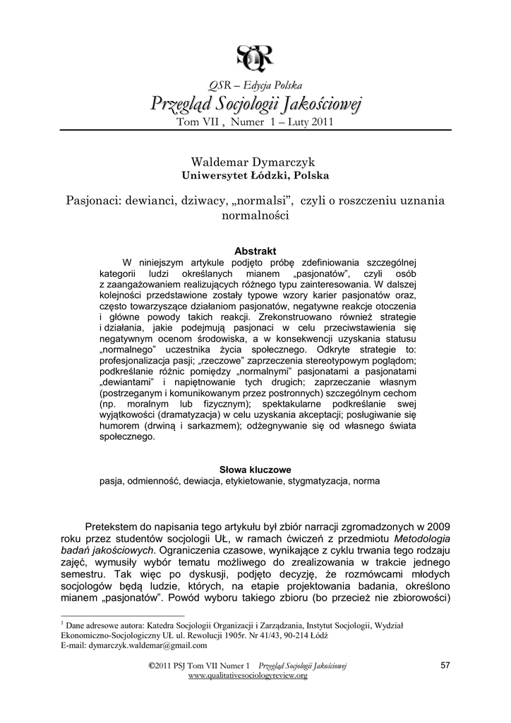 Pobierz ten artykuł - Qualitative Sociology Review