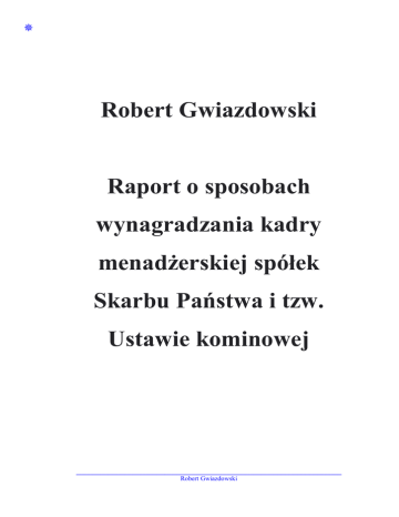 Robert Gwiazdowski Raport o sposobach wynagradzania kadry menadżerskiej spółek Skarbu Państwa i tzw. Ustawie kominowej __________________________________________________________________ Robert Gwiazdowski Niemilknąca dyskusja o sposobach wynagradzania kadry menadżerskiej spółek Skarbu Państwa powinna zostać powiązana z budowaniem modeli zarządzania przez zwiększanie wartości. Do konkluzji powyższej prowadzą następujące przesłanki: A. Współczesne przedsiębiorstwa budują swoja pozycję rynkową w procesie zarządzania przez budowanie wartości dla klienta (poniżej w punkcie 2) B. Budowanie wartości dla klienta jest procesem, dla którego podstawowe znaczenie ma odpowiednie wykorzystanie w przedsiębiorstwie posiadanych zasobów – głównie kapitału ludzkiego (poniżej w punkcie 1) C. Działanie czynnika ludzkiego jest ściśle skorelowane nie tylko z samą wysokością wynagrodzenia ale też ze sposobem kształtowania jego wysokości – najlepsi wybierają większą samodzielność w pracy przy niższym wynagrodzeniu miesięcznym a wyższych gratyfikacjach za sukces. D. Wielką przeszkodą dla właściwego wykorzystania kapitału ludzkiego w przedsiębiorstwach państwowych jest ustawa z dnia 3 marca 2000 roku o wynagradzaniu osób kierujących niektórymi podmiotami prawnymi – zwana popularnie „ustawą kominową” (poniżej w punkcie 3). E. Najlepszym sposobem budowania właściwego systemu wynagrodzenia są różnego rodzaju programy motywacyjne – w tym programy opcyjnie (poniżej w punkcie 4). __________________________________________________________________________________________ s. 2 z 18 1. Znaczenie kapitału ludzkiego. Dla każdego przedsiębiorstwa najważniejszym wyzwaniem jest zbudowanie przewagi konkurencyjnej, zapewniające wyższą rentowność i tworzące wyższą wartość dla właścicieli/akcjonariuszy. Utrzymanie przewagi konkurencyjnej wymaga ciągłej innowacyjności w podejściu do własnych produktów, oferty sprzedażowej oraz sposobu organizacji i zarządzania. Proces budowania i utrzymywania przewagi konkurencyjnej zależy od ludzi i ich nieustannej motywacji do działania. Nawet bowiem przedsiębiorstwo posiadające dobry produkt i znaną markę, mające mocną pozycję we własnej niszy rynkowej może ją łatwo utracić. Przykładu dostarcza Nokia – do niedawna lider na rynku telefonów komórkowych, który „przespał” swój czas, co skończyło się znaczącym spadkiem wartości sprzedaży i w efekcie znaczącą przeceną wartości akcji – czyli spadkiem wartości firmy dla akcjonariuszy. Posiadanej przewadze konkurencyjnej trzeba umieć zapewnić trwałość – lub zbudować nową. Innym przykładem jest najbardziej do niedawna innowacyjny koncern świata – Google, z którego w ostatnim czasie odeszło wielu liderów i który ma poważny problem ze zbudowaniem platformy, która wytrzymałaby konkurencję ze strony Facebooka. Przez lata źródłem przewagi konkurencyjnej było uzyskanie pozycji wiodącego kosztu lub szczególne wyróżnienie produktu w oczach nabywców – co rodziło ponadprzeciętną rentowność. Utrzymanie zdobytej przewagi konkurencyjnej wymagało inwestycji w zasoby i umiejętności, które dla aktualnych konkurentów stanowiły barierę mobilności w sektorze, a dla potencjalnych konkurentów – barierę wejścia na rynek. Globalizacja i fragmentacja rynków spowodowały, że sama pozycja zajmowana w sektorze przestała być źródłem jej przewagi konkurencyjnej. Źródłem tej przewagi stały się posiadane zasoby (Resuorce Based View - RBV). W szczególności zasoby powstające w oparciu o wiedzę i umiejętność jej wykorzystania w praktyce. Są to tak zwane „kluczowe kompetencje” – czyli technologiczne i produkcyjne zdolności, które są bazą dla tworzenia __________________________________________________________________________________________ s. 3 z 18 wyróżniających produktów, pozwalające przenosić przewagę konkurencyjną między sektorami i rynkami oraz budować rynki przyszłości. Podstawowym testem, któremu muszą być poddane zasoby i kompetencje jest zdolność generowania wartości dodanej dla klientów – czyli nadwyżki korzyści, jakie klienci otrzymują nabywając produktu lub usługę nad kosztami, które muszą na to ponieś. Szczególnie istotne są tak zwane „wiązki wartości” – które mogą być zaoferowane danej grupie klientów. Można oferować produkty po szczególnie niskiej cenie, albo szczególnie wysokiej jakości, albo o szczególnie dobrym dopasowaniem do indywidualnych potrzeb klienta. Największa przewaga konkurencyjna powstaje, gdy uda się stworzyć oryginalną „wiązkę wartości” w oparciu o posiadane zasoby, których konkurenci nie mogą zdobyć lub podobnie skonfigurować. Im większą wartość dodaną dla klienta można stworzyć w oparciu o posiadane zasoby, tym są one cenniejsze. Im bardziej niedostępne i niezastępowalne są owe zasoby, tym trwalsza jest przewaga konkurencyjna w oparciu o nie zbudowana. Najważniejszym zasobem jest dziś kapitał ludzki. Jak pisał George Gilder w „Wealth and Poverty” „najlepsze, najbardziej władcze, najbardziej oryginalne i najbardziej giętkie umysły stanowią najtrwalsze złoto”. Czterysta lat temu Hiszpania, zalewana powodzią kruszców z kopalń w swoich koloniach, była tak zamożna, jak dzisiaj jest Arabia Saudyjska. Nie udało jej się jednak osiągnąć prawdziwego bogactwa i wkrótce popadła w stagnację, podczas gdy w pozornie biedniejszych częściach Europy – jak Holandia, czy Wyspy Brytyjskie rozwijał się przemysł istotnie przyczyniając się do wzrostu narodowego bogactwa. Bogactwo jest bowiem produktem umysłu. A jego umiejętne wykorzystywanie to podstawa rozwoju. __________________________________________________________________________________________ s. 4 z 18 2. Zarządzanie przez budowanie wartości. Zarządzanie wartością wymaga określ